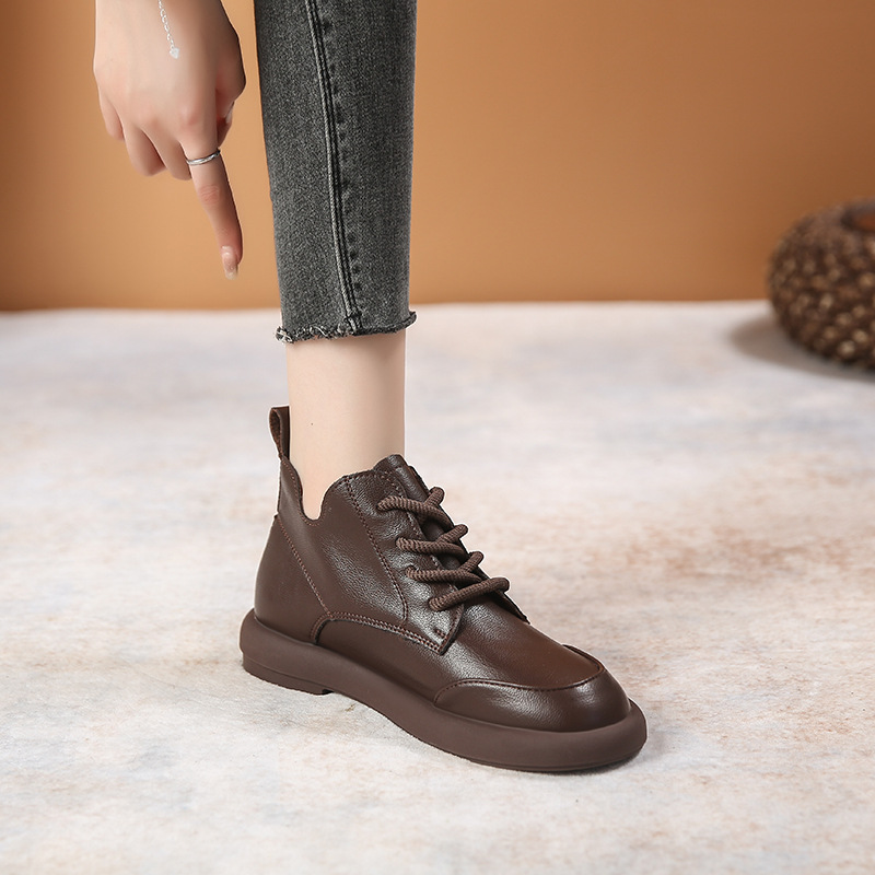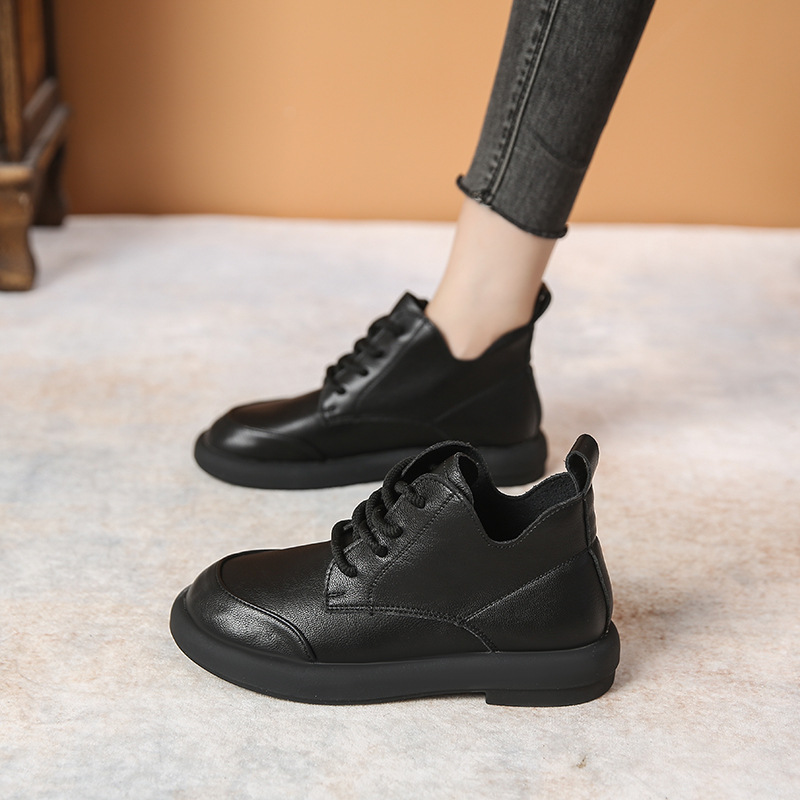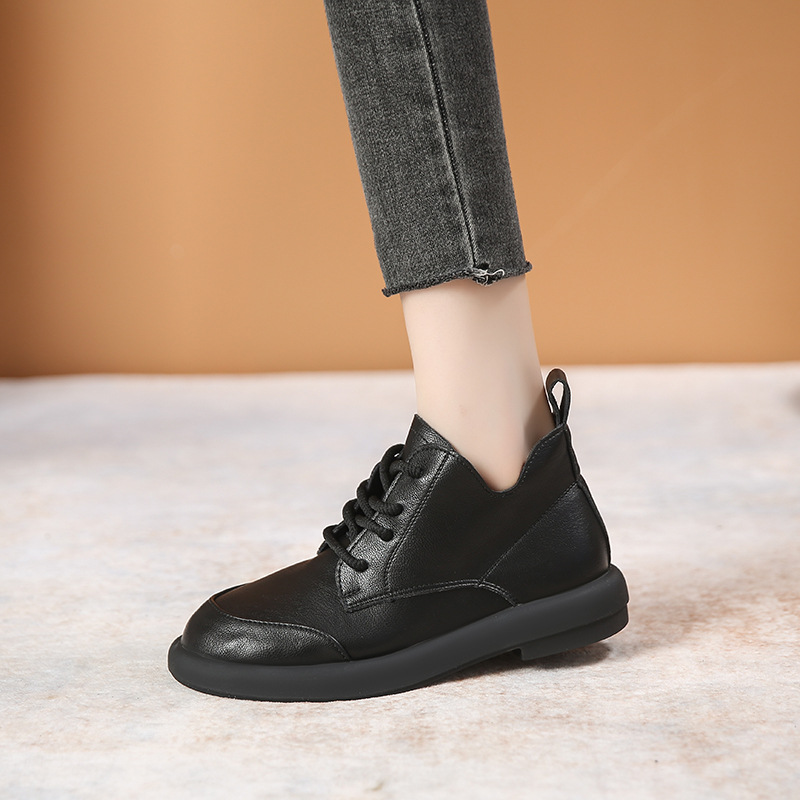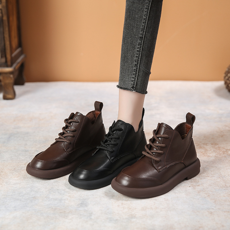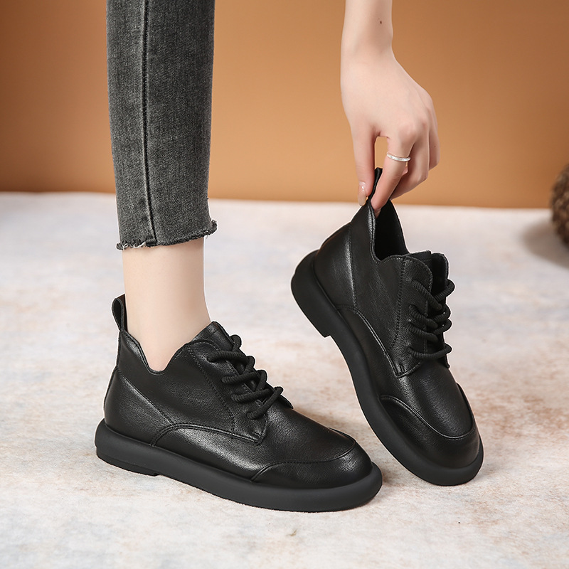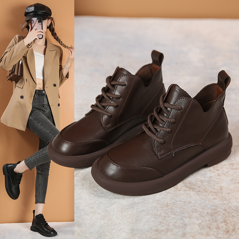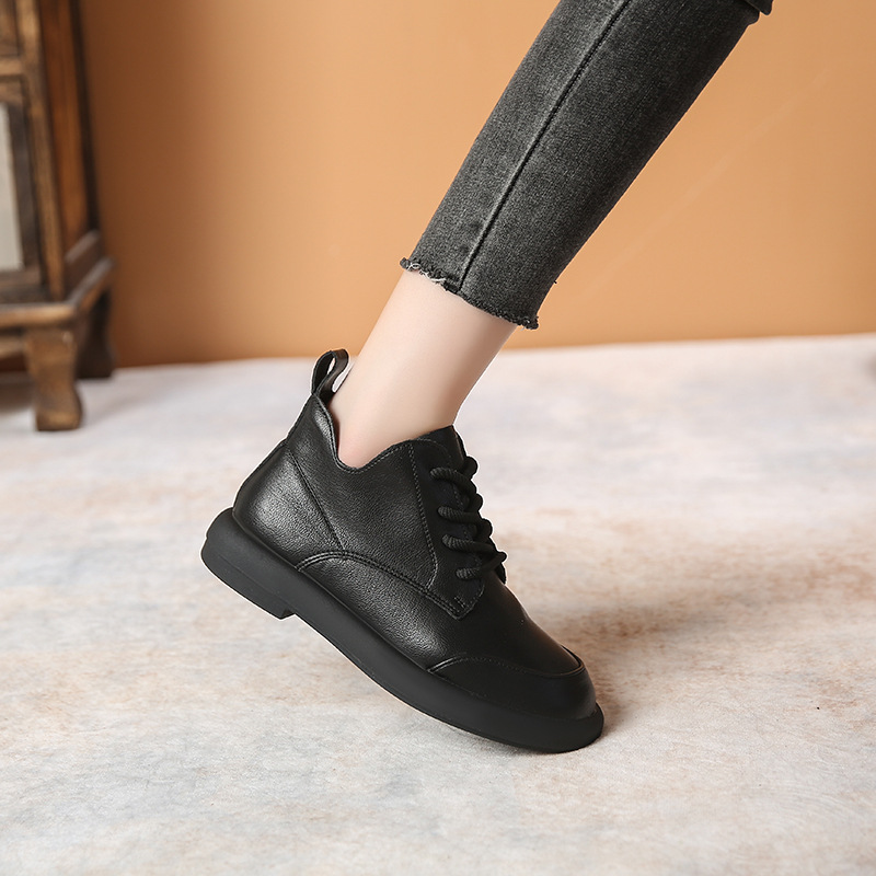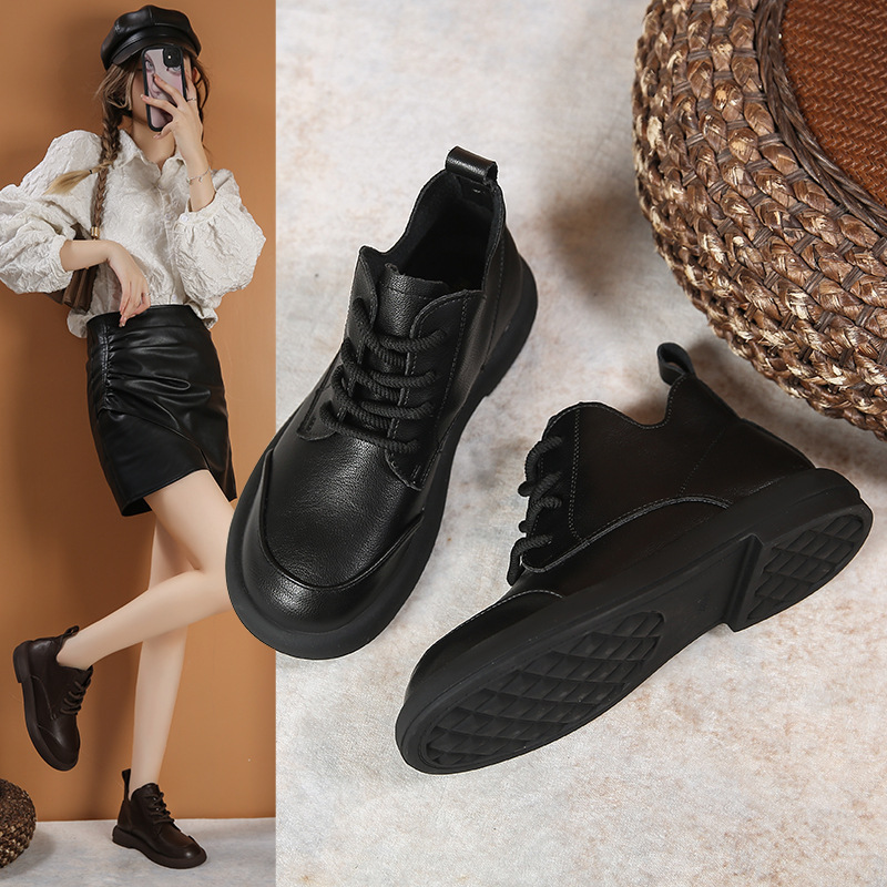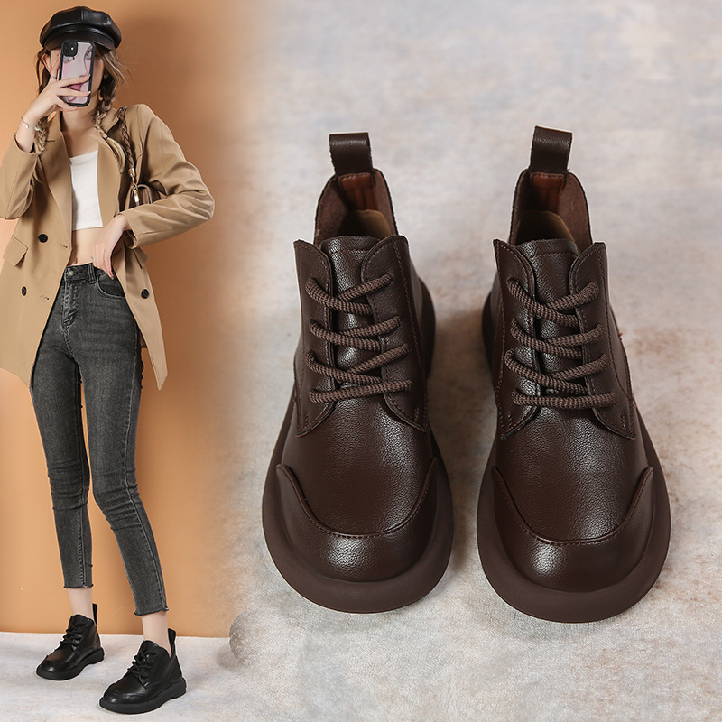 두꺼운 밑창 마틴 부츠 여성의 가을과 겨울 2024 새로운 올 매치 두꺼운 밑창 작은 가죽 신발 레이스 업 기모 어린이를위한 따뜻한 부츠