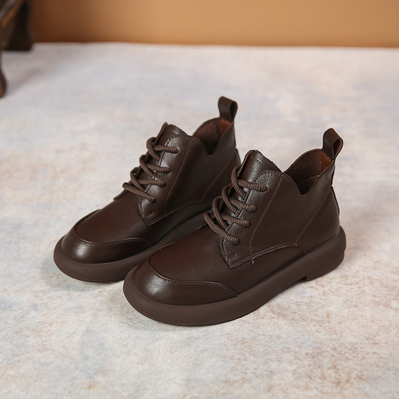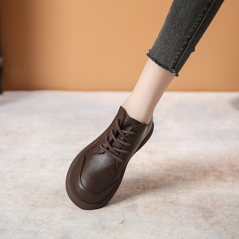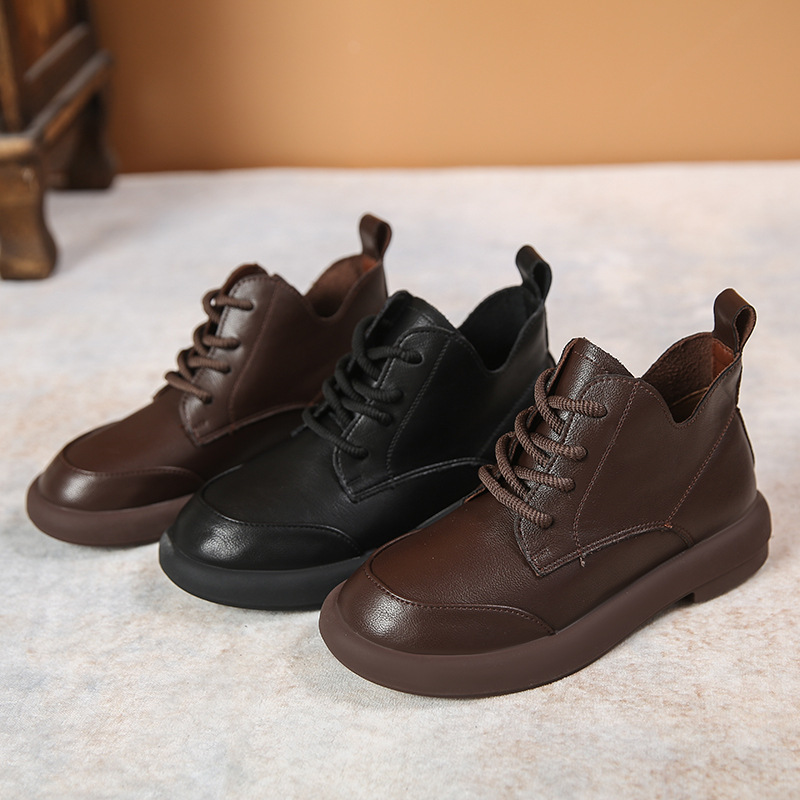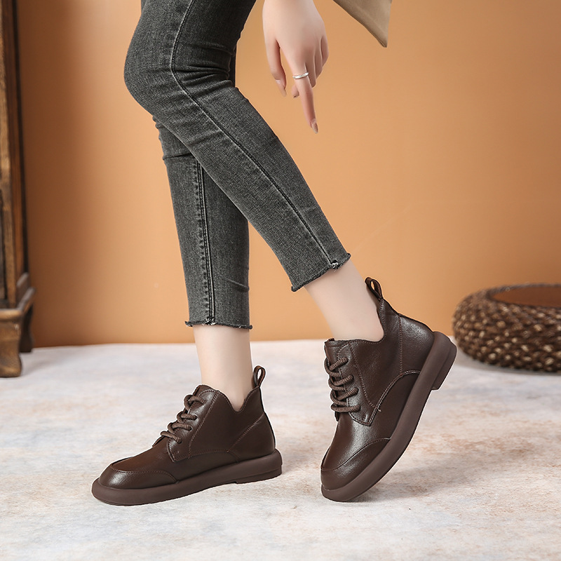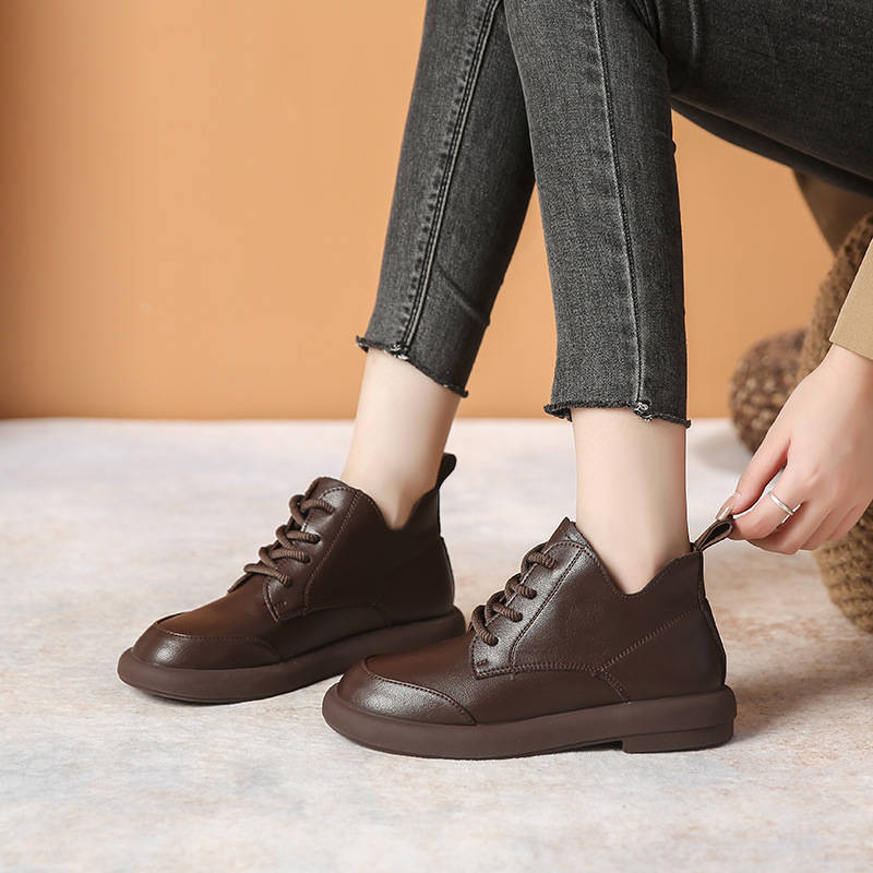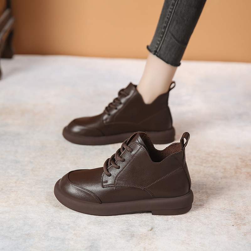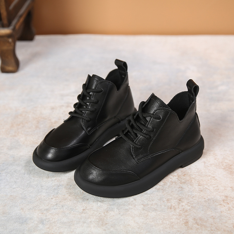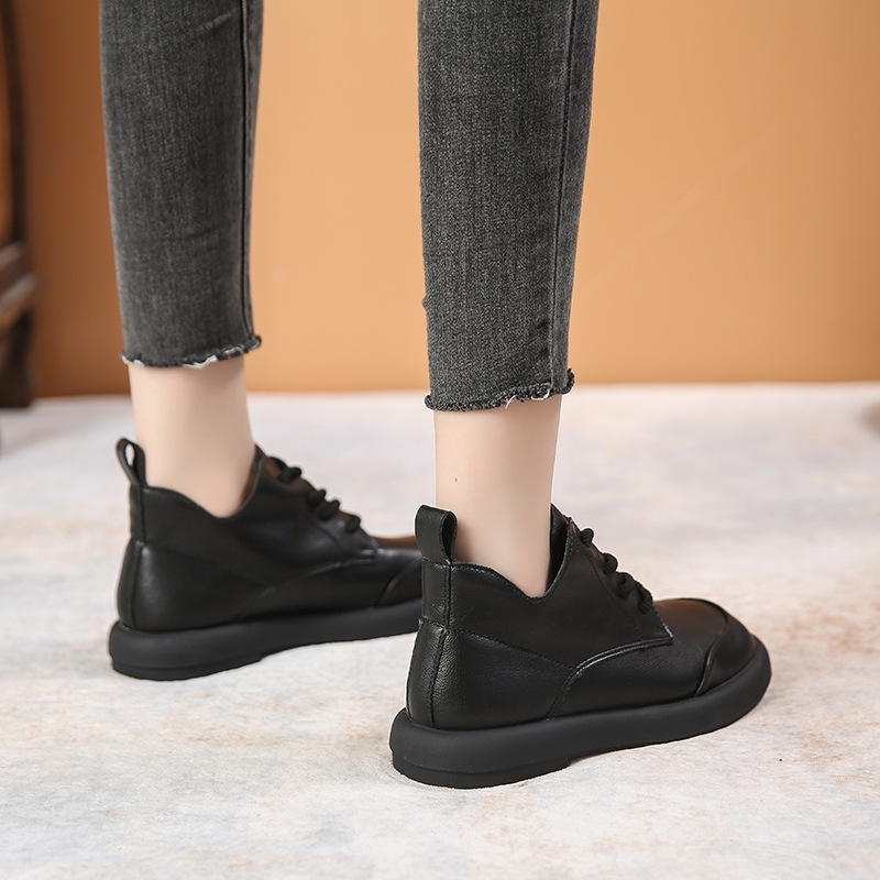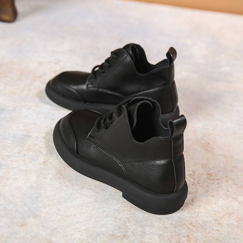 두꺼운 밑창 마틴 부츠 여성의 가을과 겨울 2024 새로운 올 매치 두꺼운 밑창 작은 가죽 신발 레이스 업 기모 어린이를위한 따뜻한 부츠