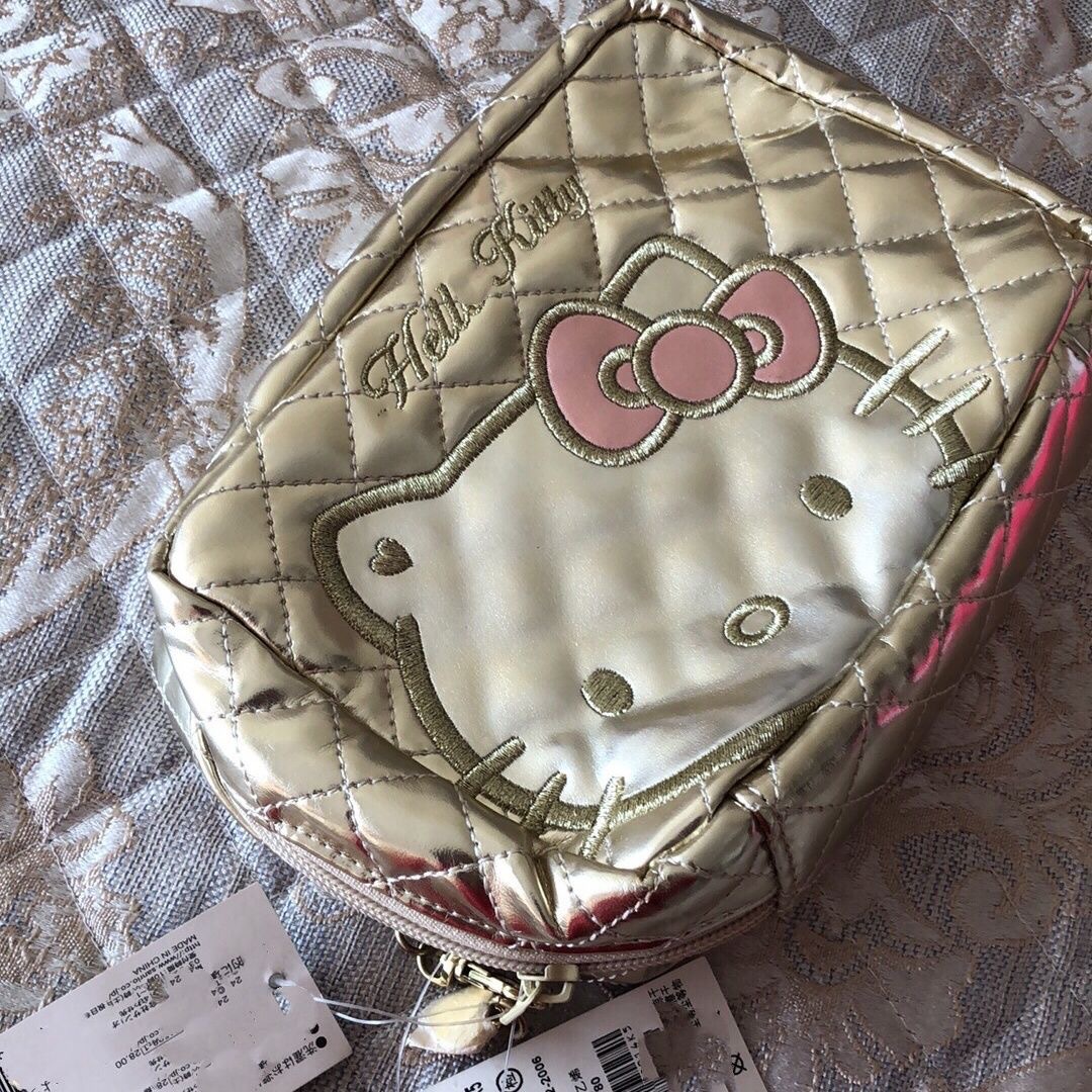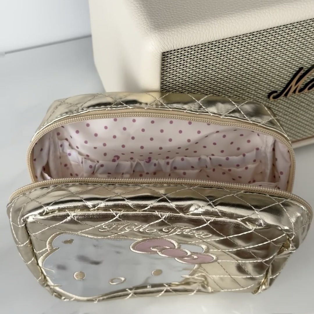 귀여운 헬로 키티 링지 저장 가방 소녀의 심장 실버 대용량 화장품 가방 휴대용 워시 백 클러치 백