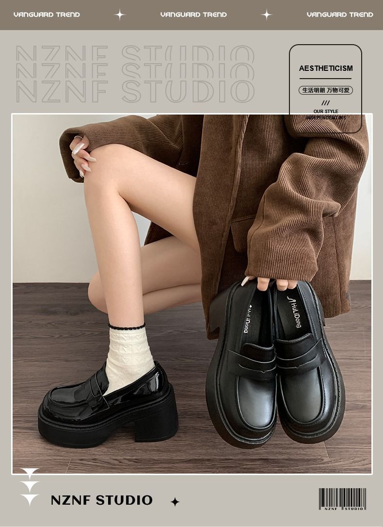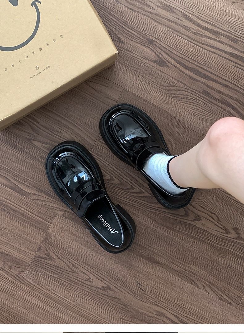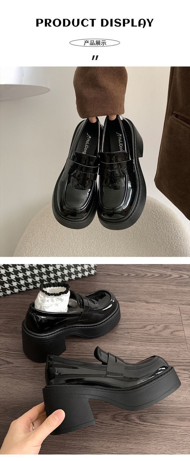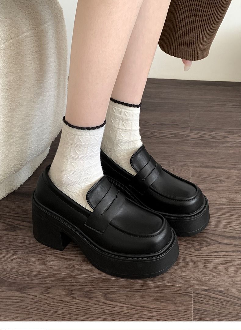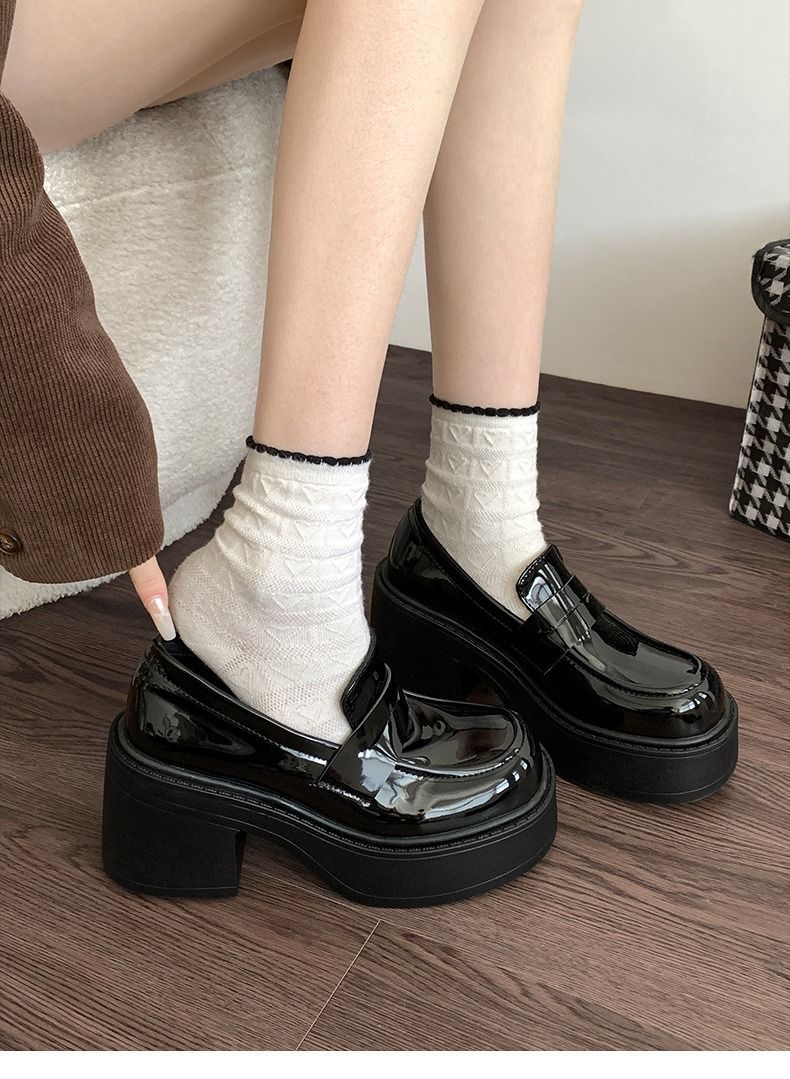 블랙 프렌치 스타일 로퍼 여름 2024 새로운 두꺼운 힐 하이힐 레트로 영국 스타일 높이 증가 두꺼운 단독 여성용 작은 가죽 신발스토어 가기