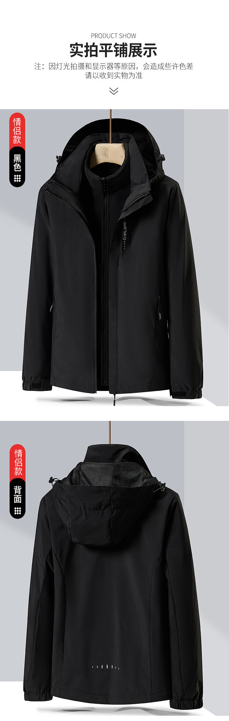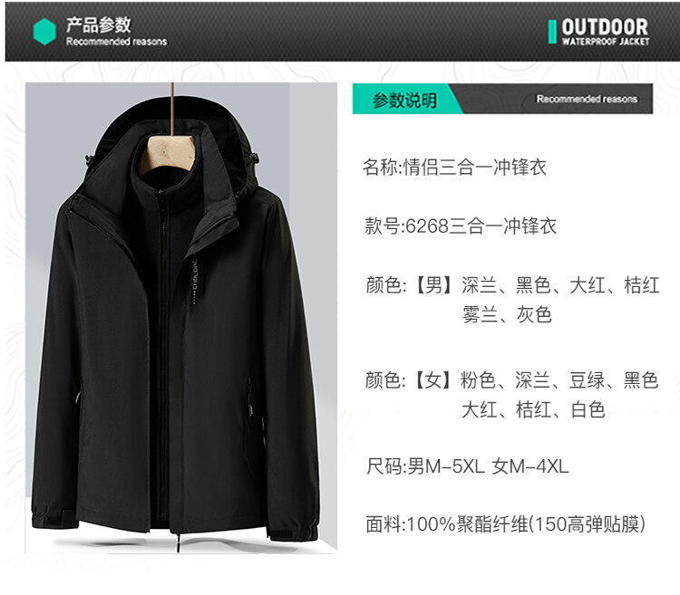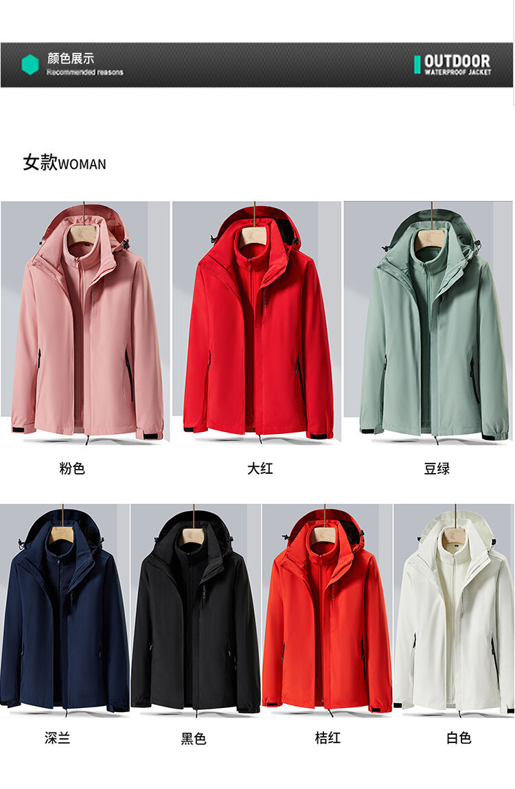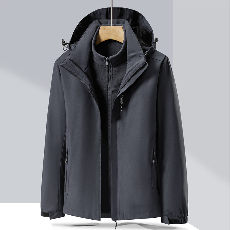 폭발성 단색 야외 분리 가능한 등산 세트 2 피스 재킷 안티 스플래싱 워터 커플 남성과 여성을위한 3 대 1 재킷