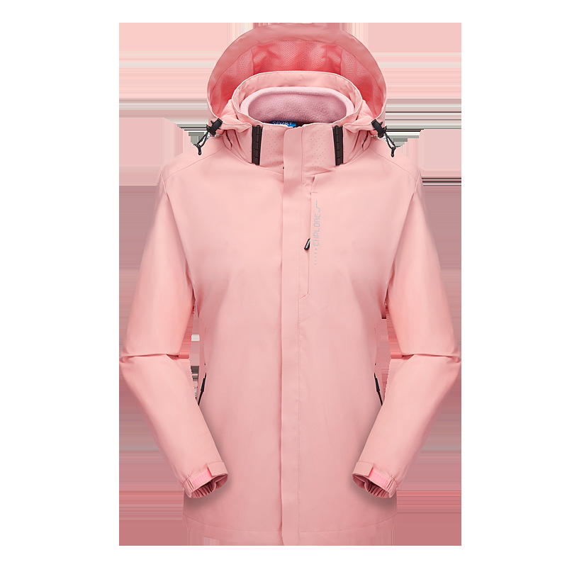 폭발성 단색 야외 분리 가능한 등산 세트 2 피스 재킷 안티 스플래싱 워터 커플 남성과 여성을위한 3 대 1 재킷스토어 가기