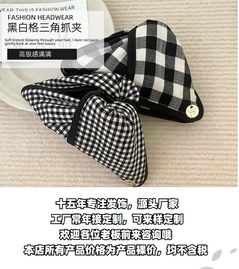 일본과 한국의 복고풍 패션 흑백 삼각형 잡아 클립 Ins 하이 엔드 예술적 머리 상어 클립 헤어 액세서리