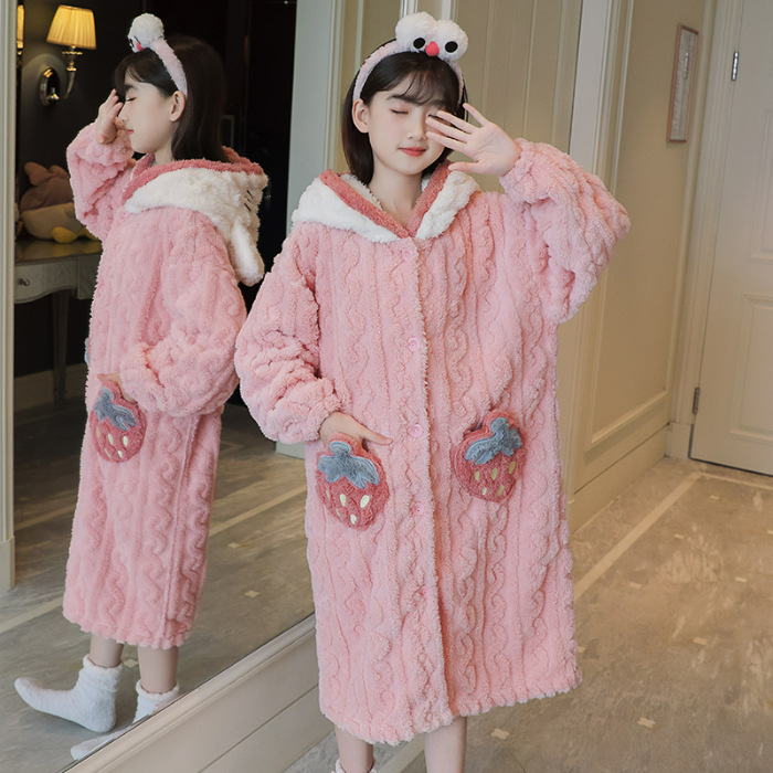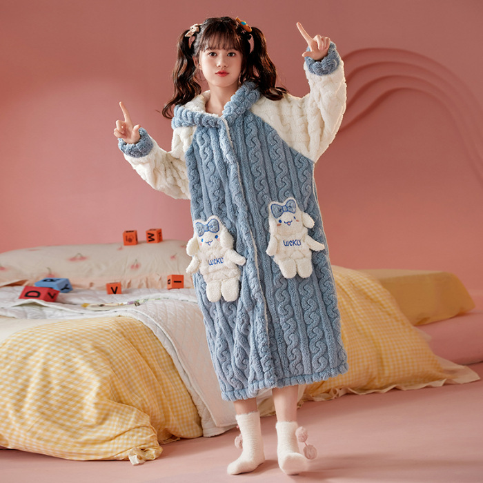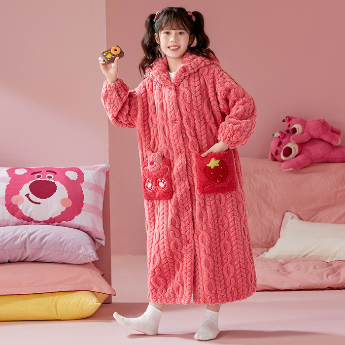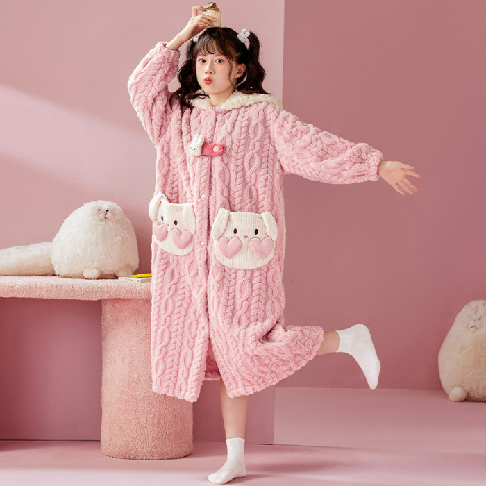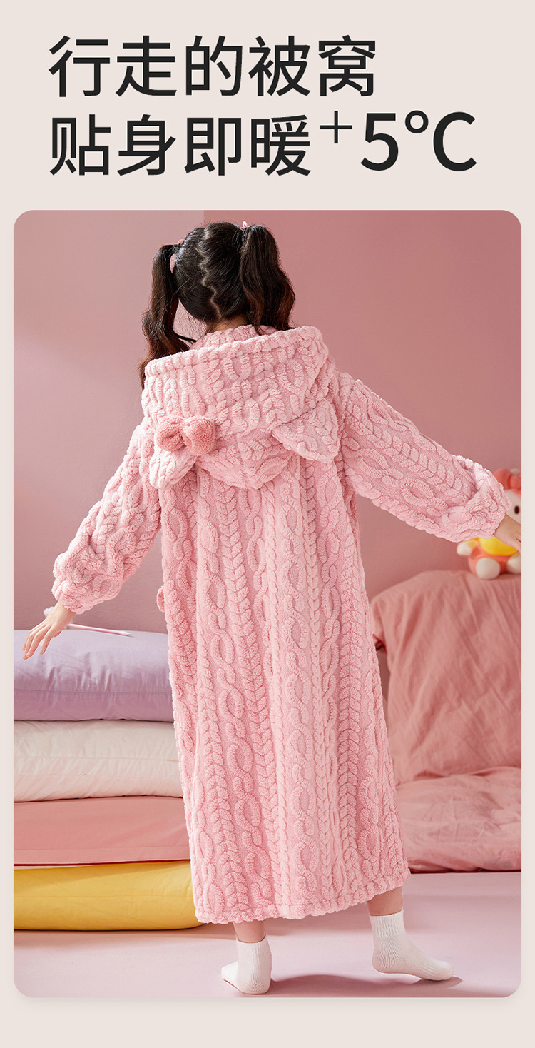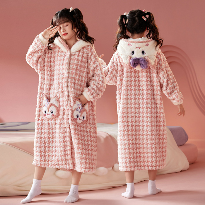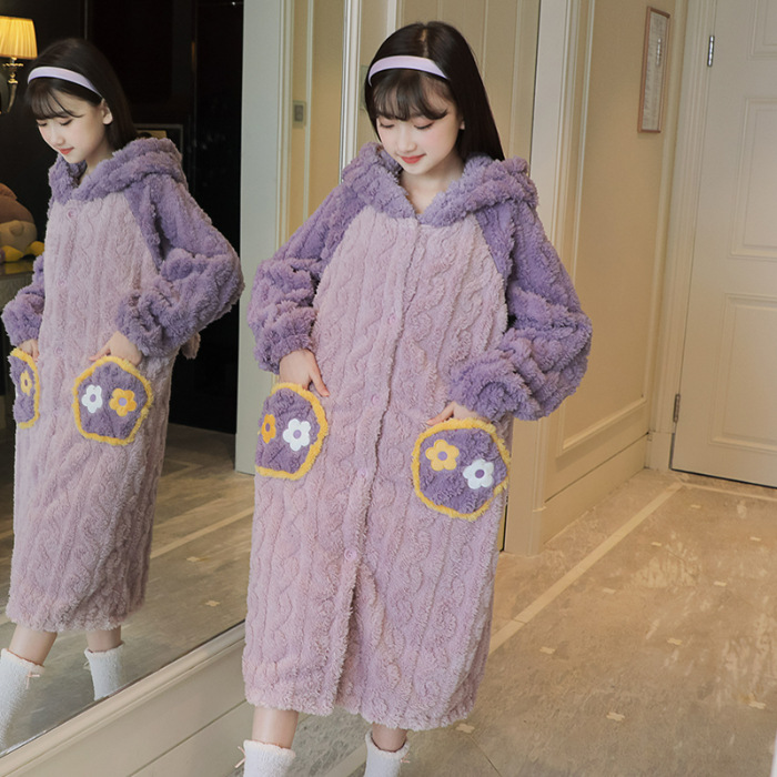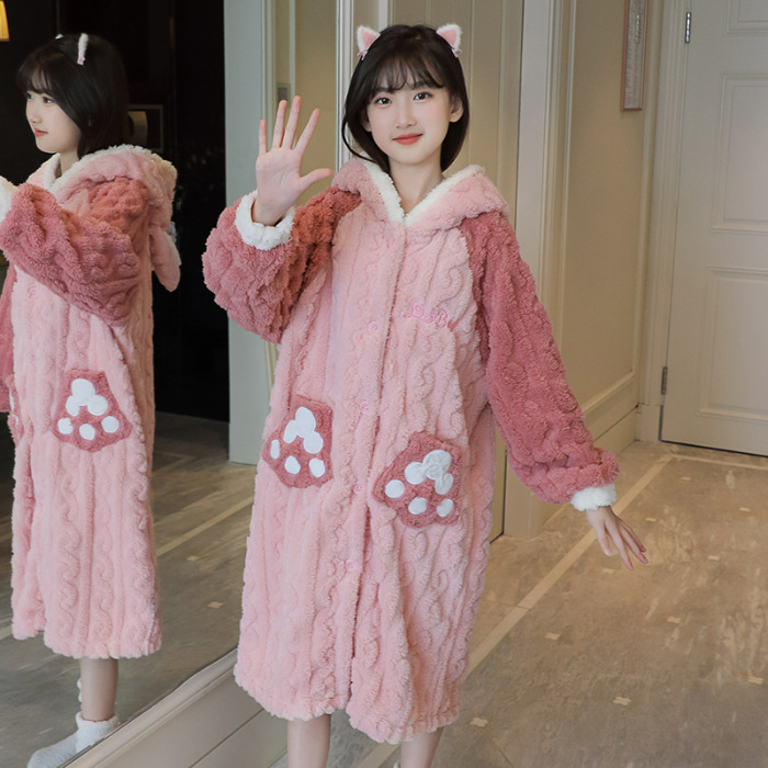 여자 나이트가운 겨울 플란넬 두꺼운 긴 목욕 가운 목욕 타월 따뜻한 아기 어린이 집 옷 세트 산호 양털