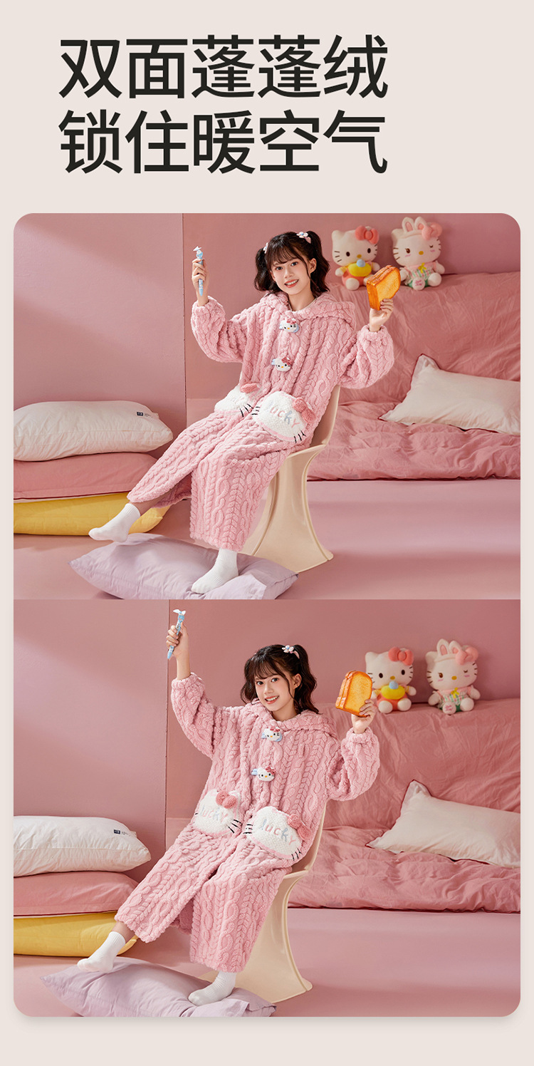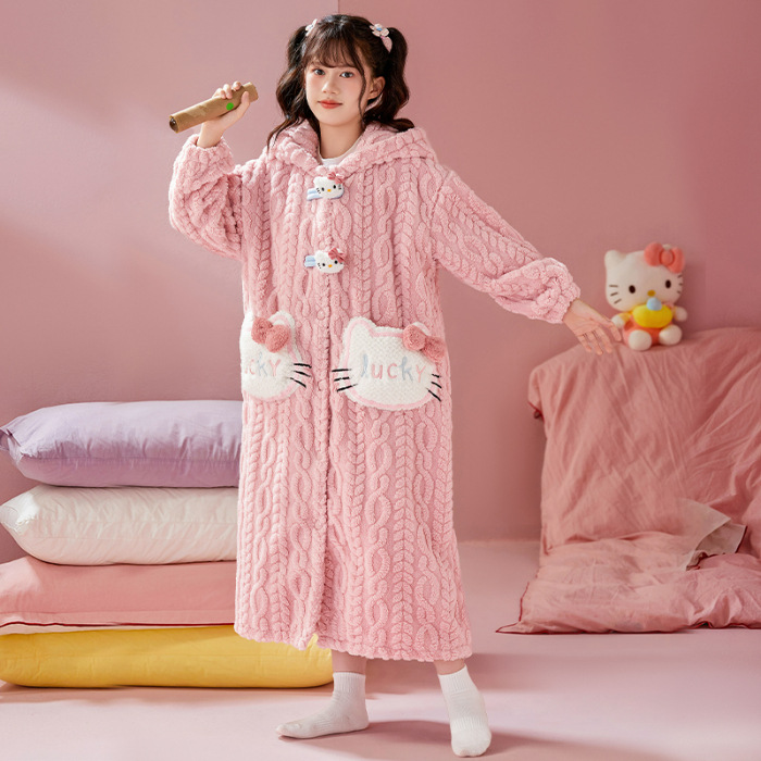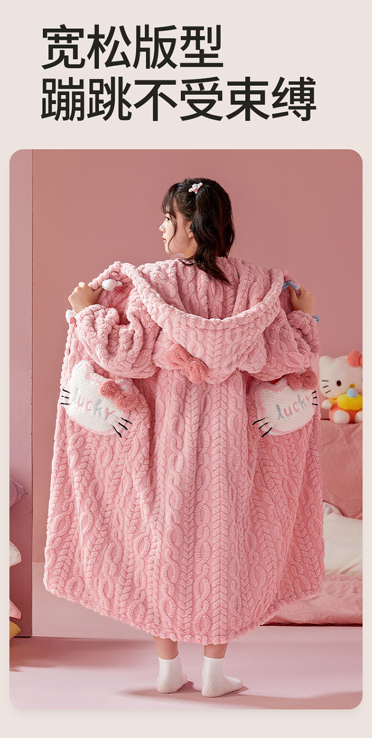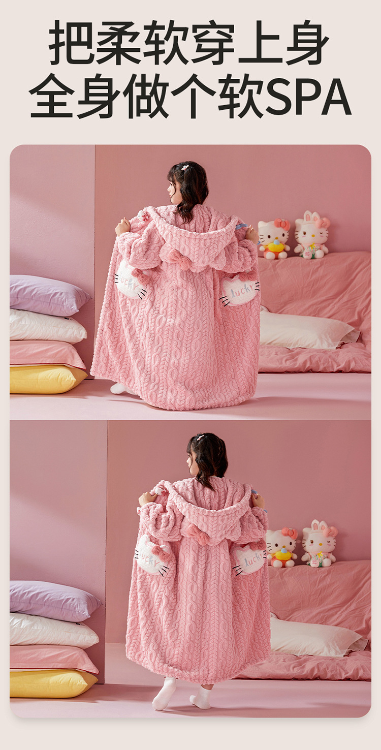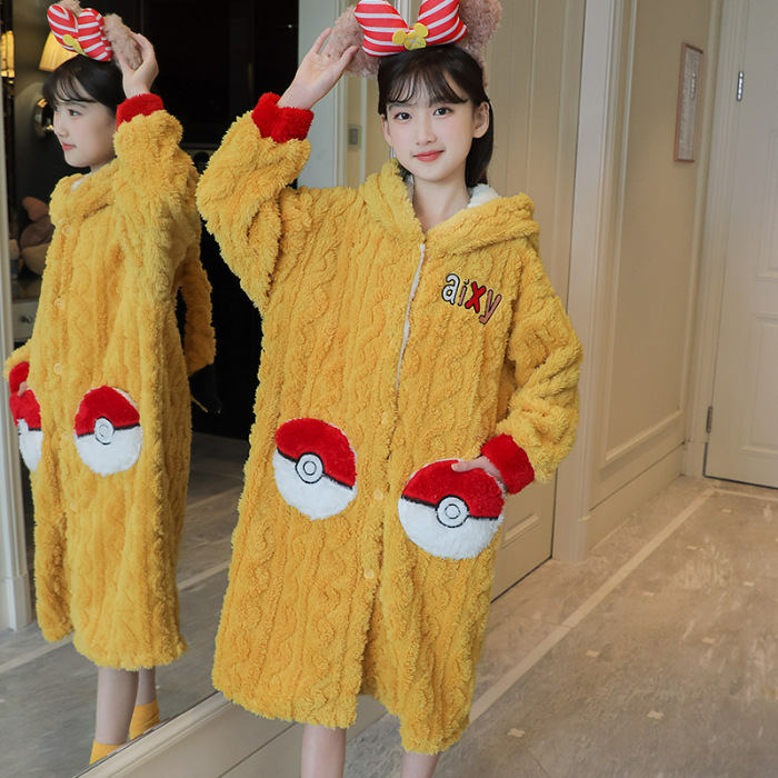 여자 나이트가운 겨울 플란넬 두꺼운 긴 목욕 가운 목욕 타월 따뜻한 아기 어린이 집 옷 세트 산호 양털