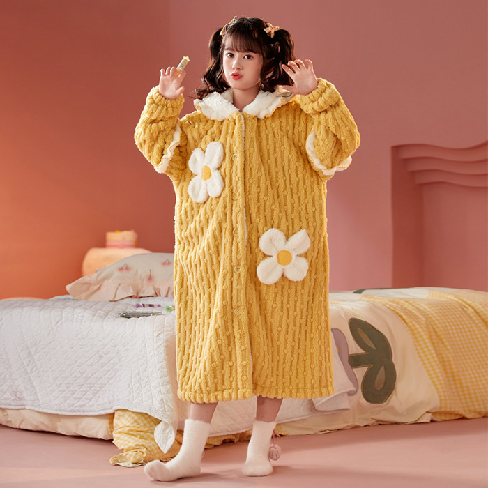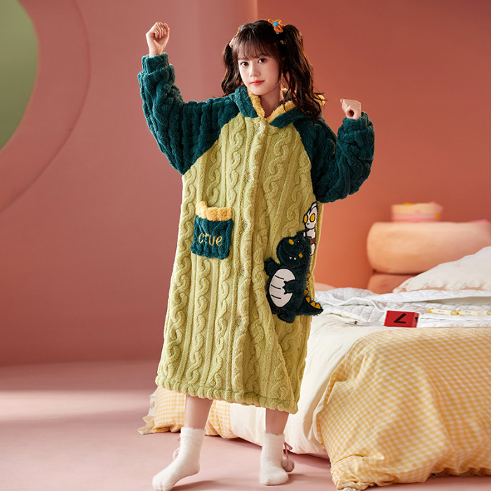 여자 나이트가운 겨울 플란넬 두꺼운 긴 목욕 가운 목욕 타월 따뜻한 아기 어린이 집 옷 세트 산호 양털스토어 가기