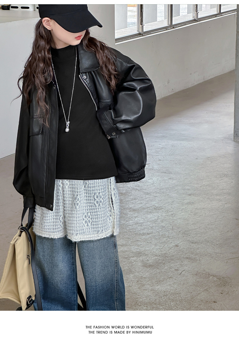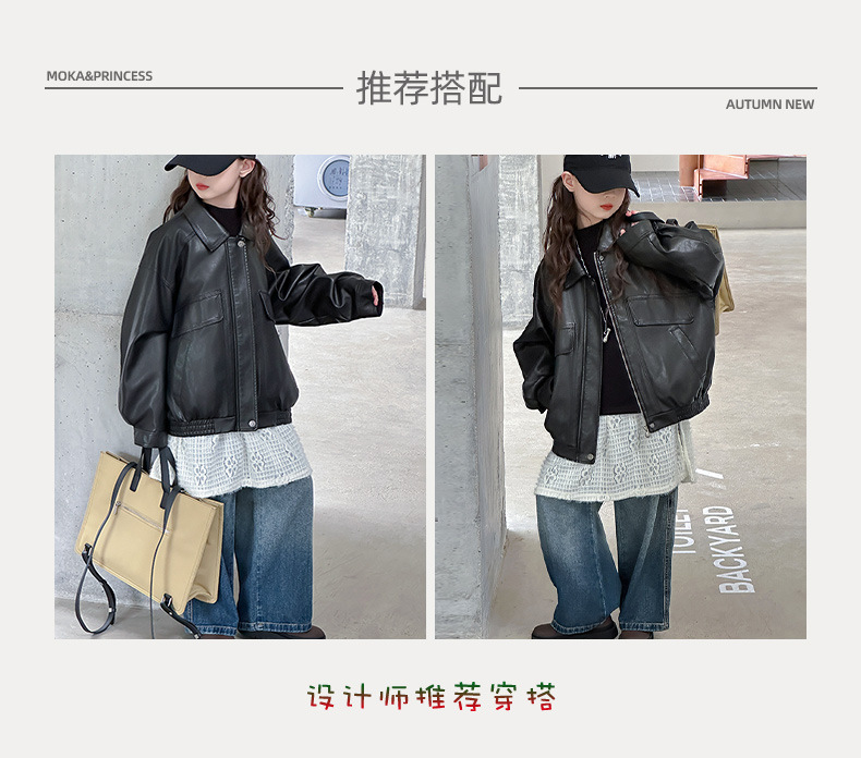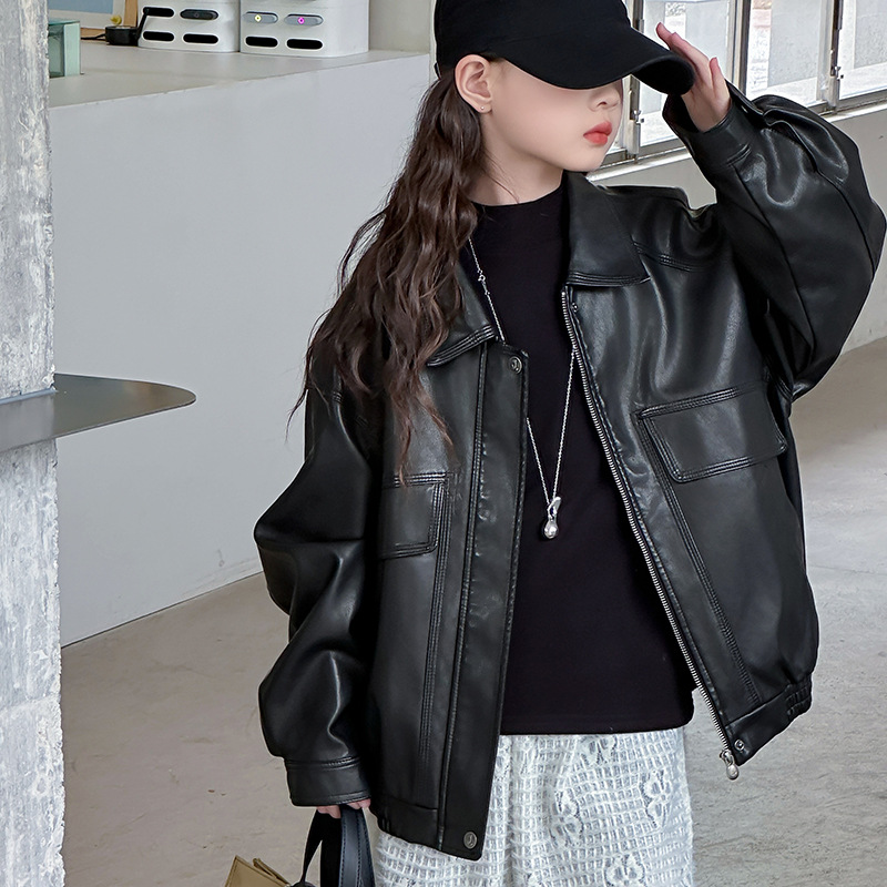 여아 가죽 자켓 봄 가을 2026 신상 중대형 아동용 지퍼 자켓 스타일리쉬하고 세련된 라펠 탑 블랙 가죽 자켓스토어 가기