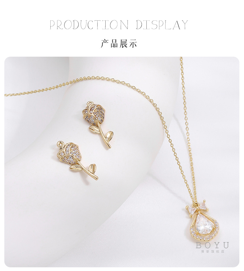 14K 금 상감 지르콘 펜던트 수제 DIY 목걸이 팔찌 펜던트 펜던트 액세서리 펜던트 도매스토어 가기