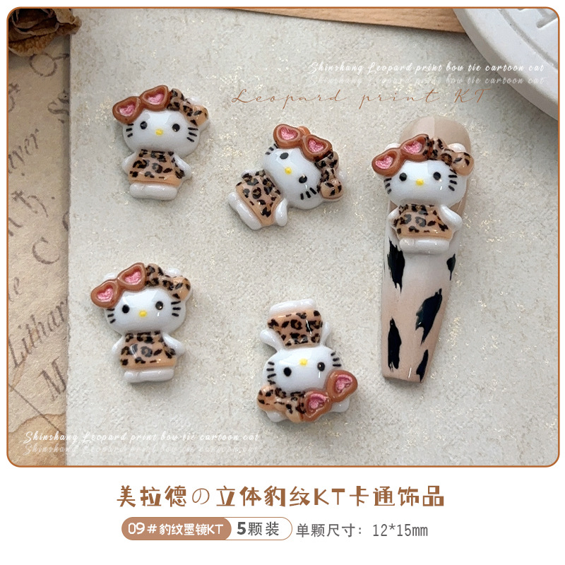 레오파드 무늬 kt 고양이 네일 아트 액세서리 새로운 귀여운 만화 고양이 활 사랑 착용 네일 드릴 네트워크 인기 폭발
