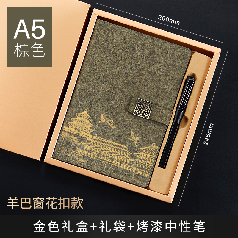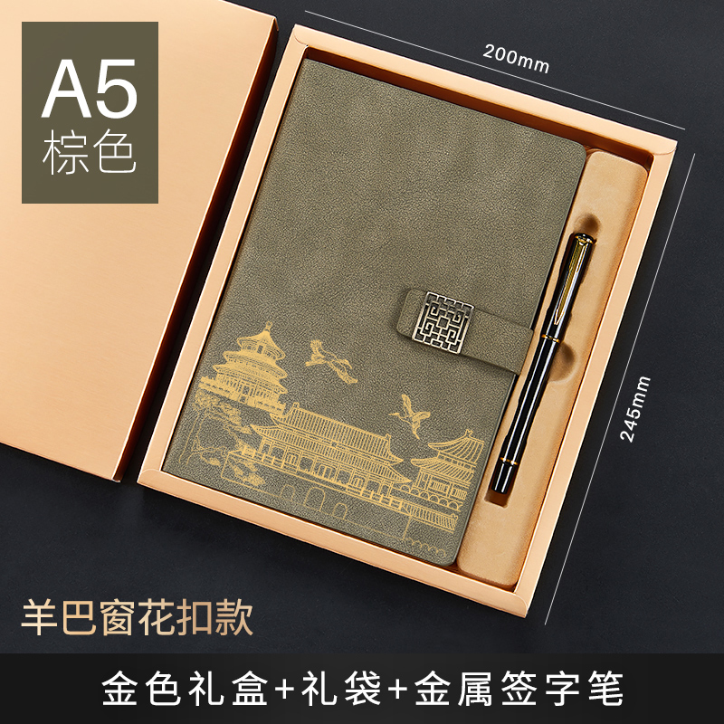 • A5 브라운—양바 창 그릴 버클 Y—2556F+금속 펜+골드 선물 상자 선물 가방