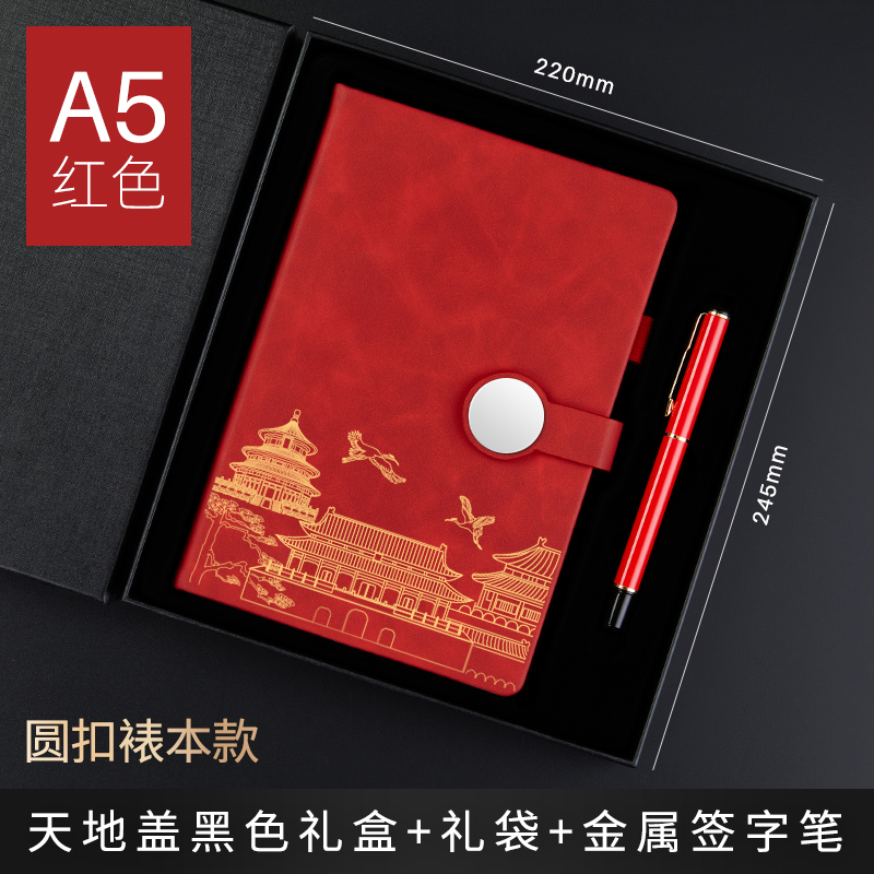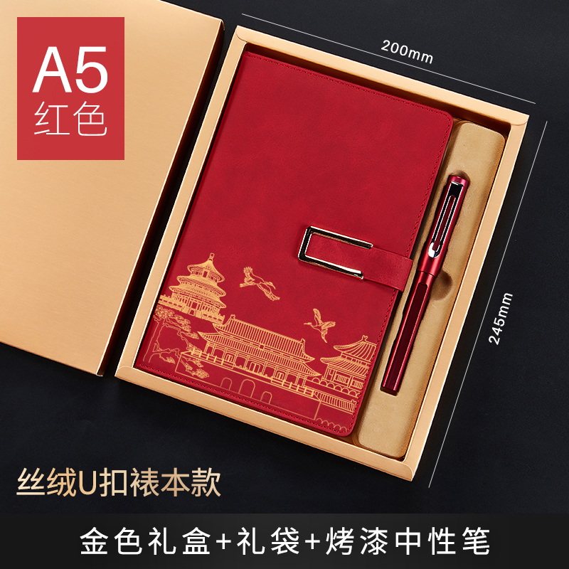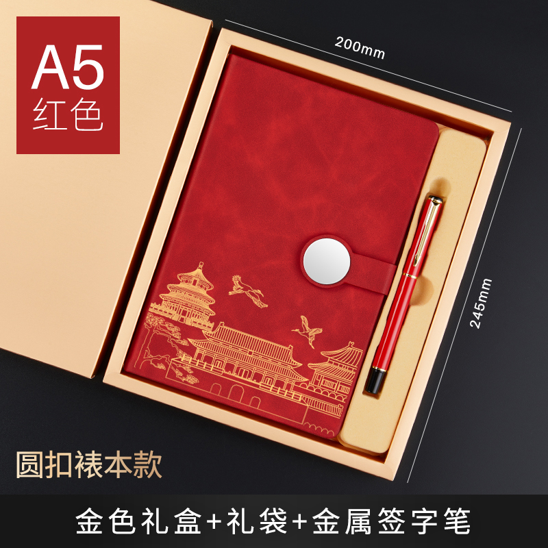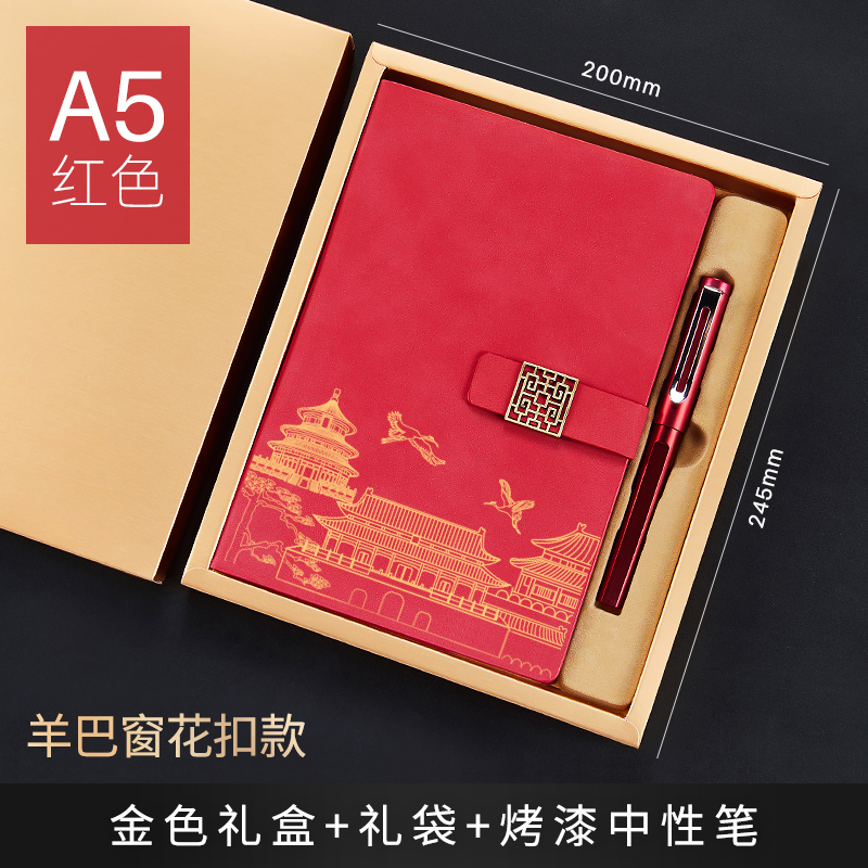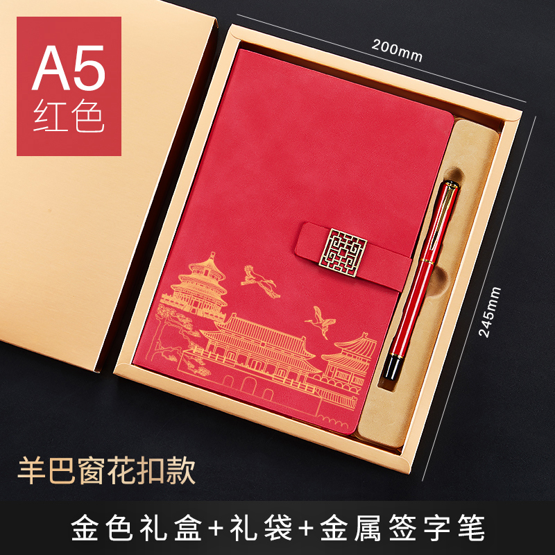 • A5 레드—양바 창 그릴 버클 Y—2556F+금속 펜+골드 선물 상자 선물 가방