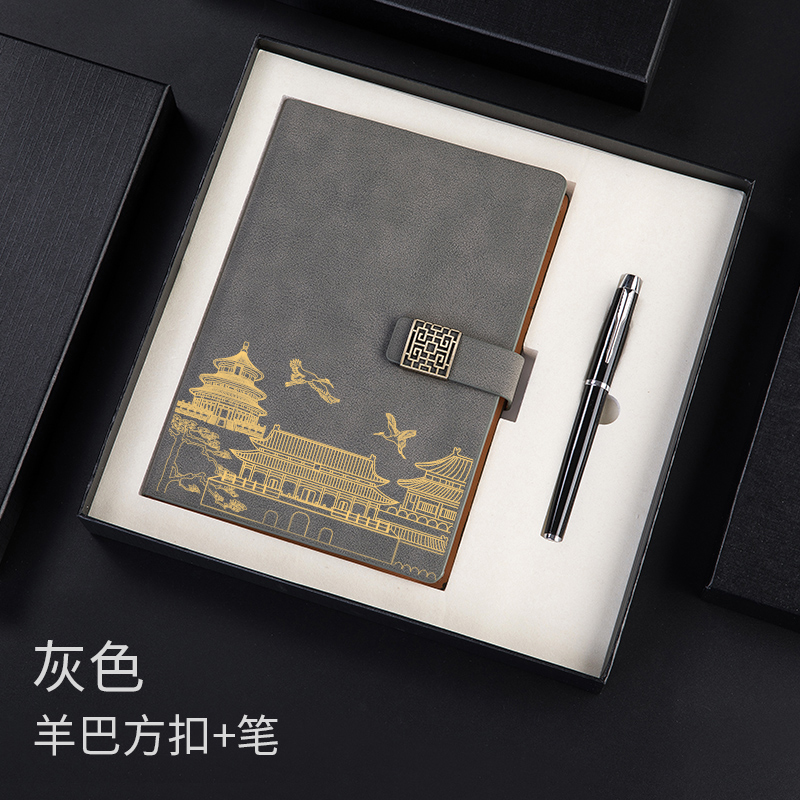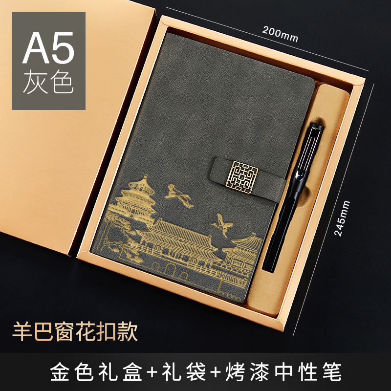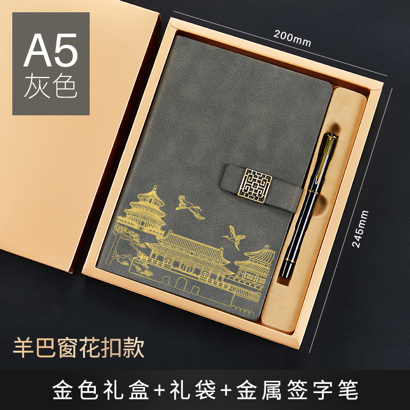 • A5 그레이—양바 창 그릴 버클 Y—2556F+금속 펜+고급 검정색 선물 상자 선물 가방