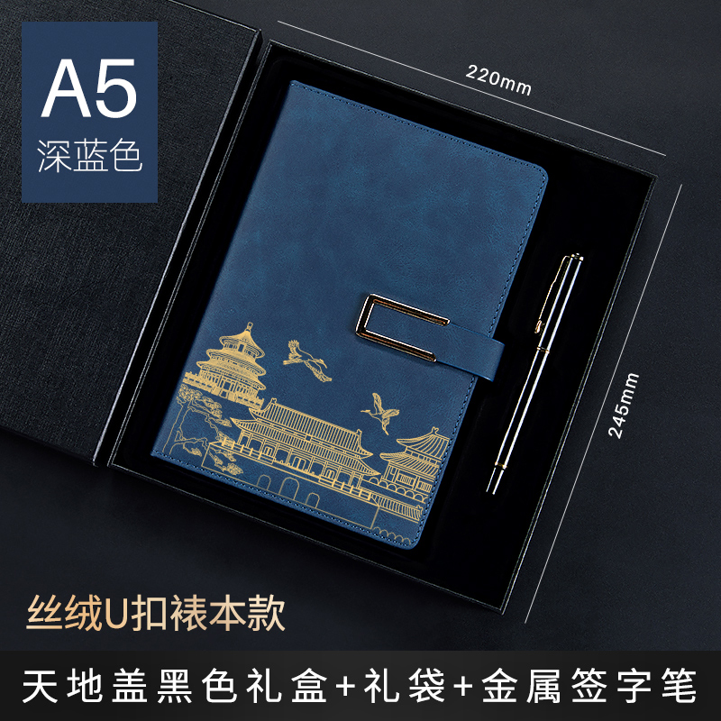 • A5 블루—양바 창 그릴 버클 Y—2556F+금속 펜+고급 검정색 선물 상자 선물 가방