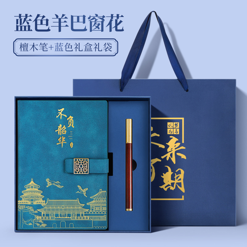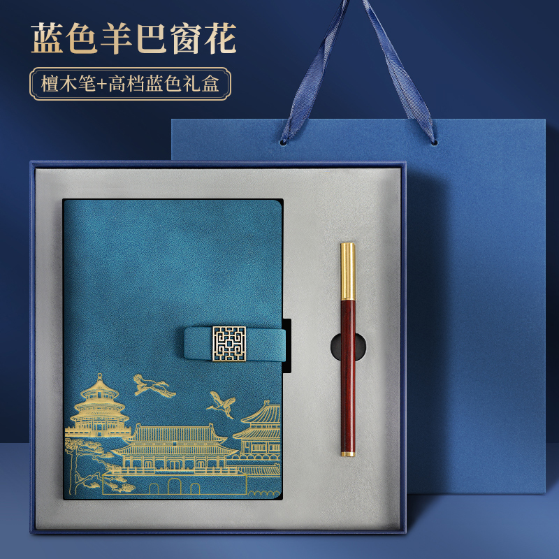 • 파란색 양 창 그릴 + 창 그릴 U 디스크 + 백단향 펜 + 고급 파란색 선물 상자