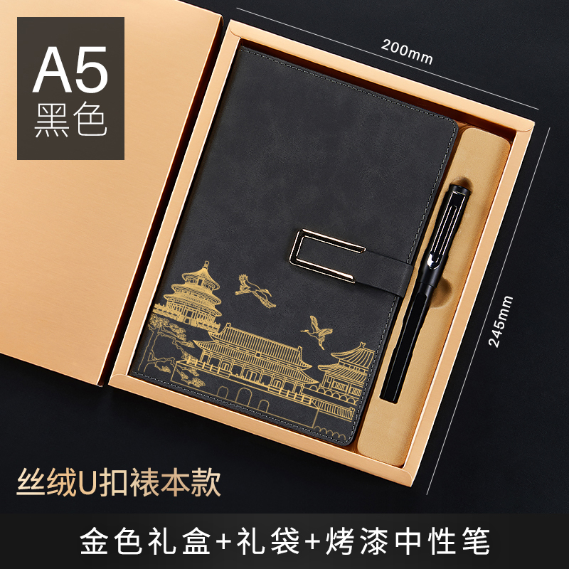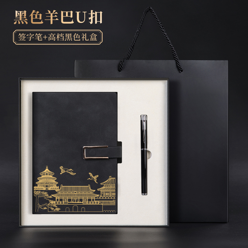 • A5 검정—양바 U자형 버클 Y—2556U+금속 펜+고급 검정색 선물 상자 선물 가방