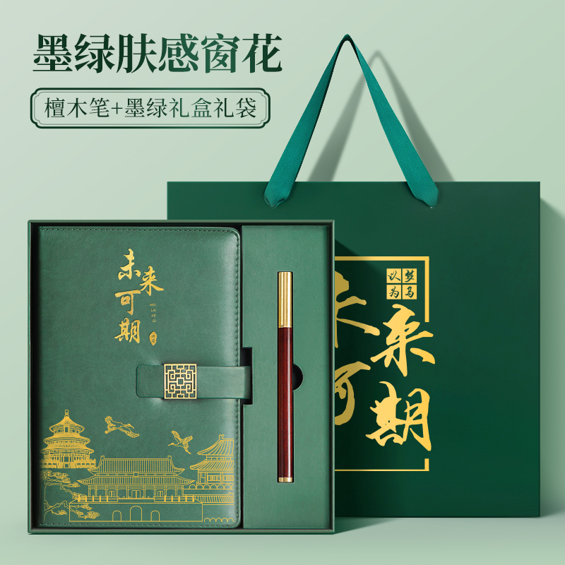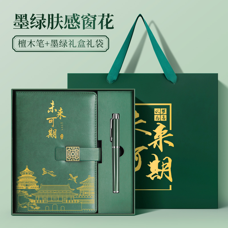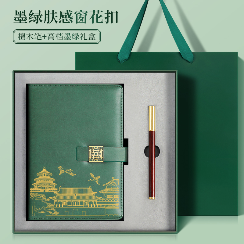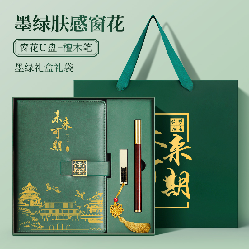 • 자금성 짙은 녹색 피부 느낌 창 그릴 + 창 그릴 U 디스크 + 백단향 펜 + 고급 짙은 녹색 선물 상자