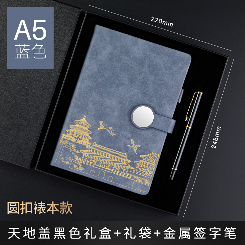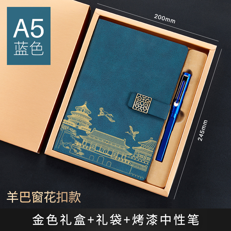 • A5 블루—양바 창 그릴 버클 Y—2556F+금속 펜+골드 선물 상자 선물 가방