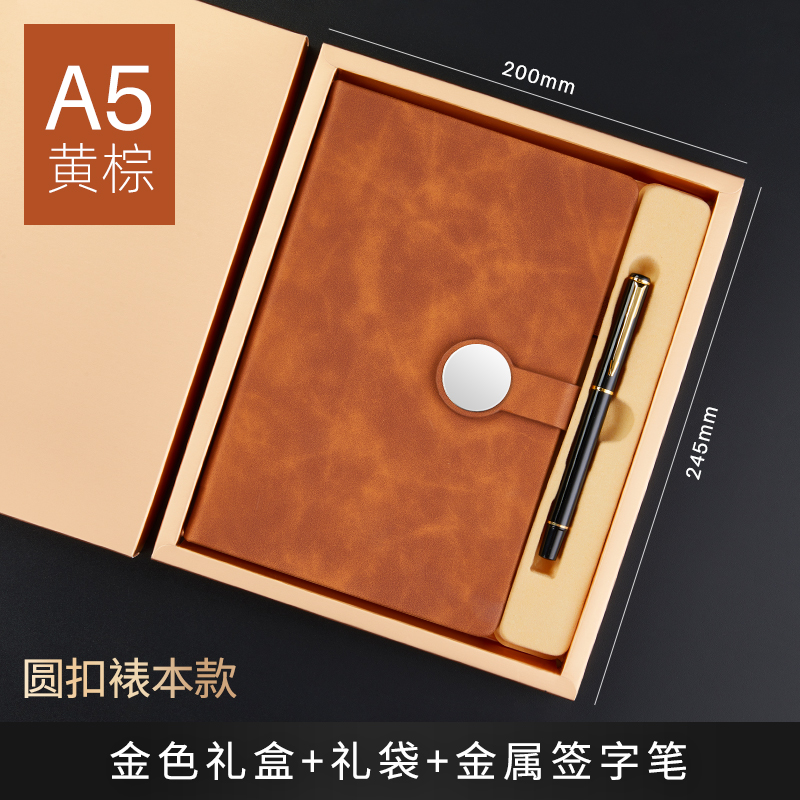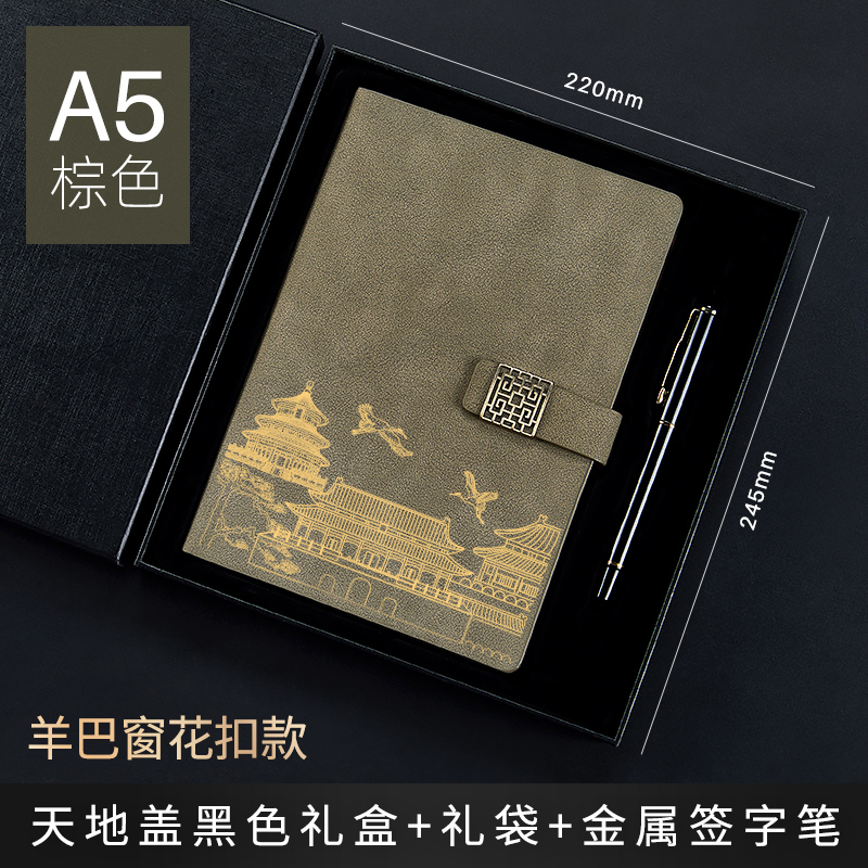 • A5 브라운—양바 창 그릴 버클 Y—2556F+금속 펜+검은색 선물 상자 선물 가방
