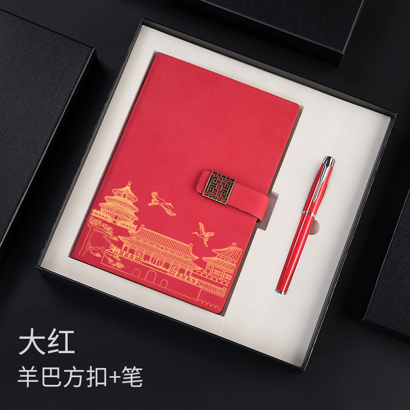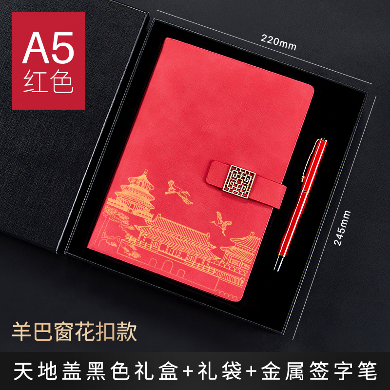 • A5 레드—양바 창 그릴 버클 Y—2556F+금속 펜+검은색 선물 상자 선물 가방