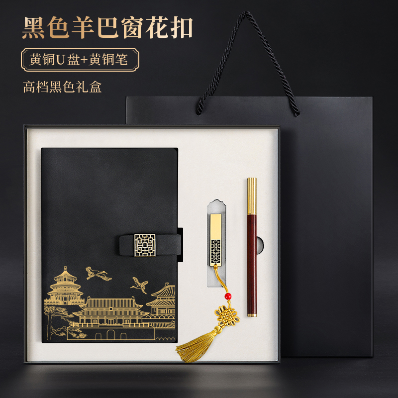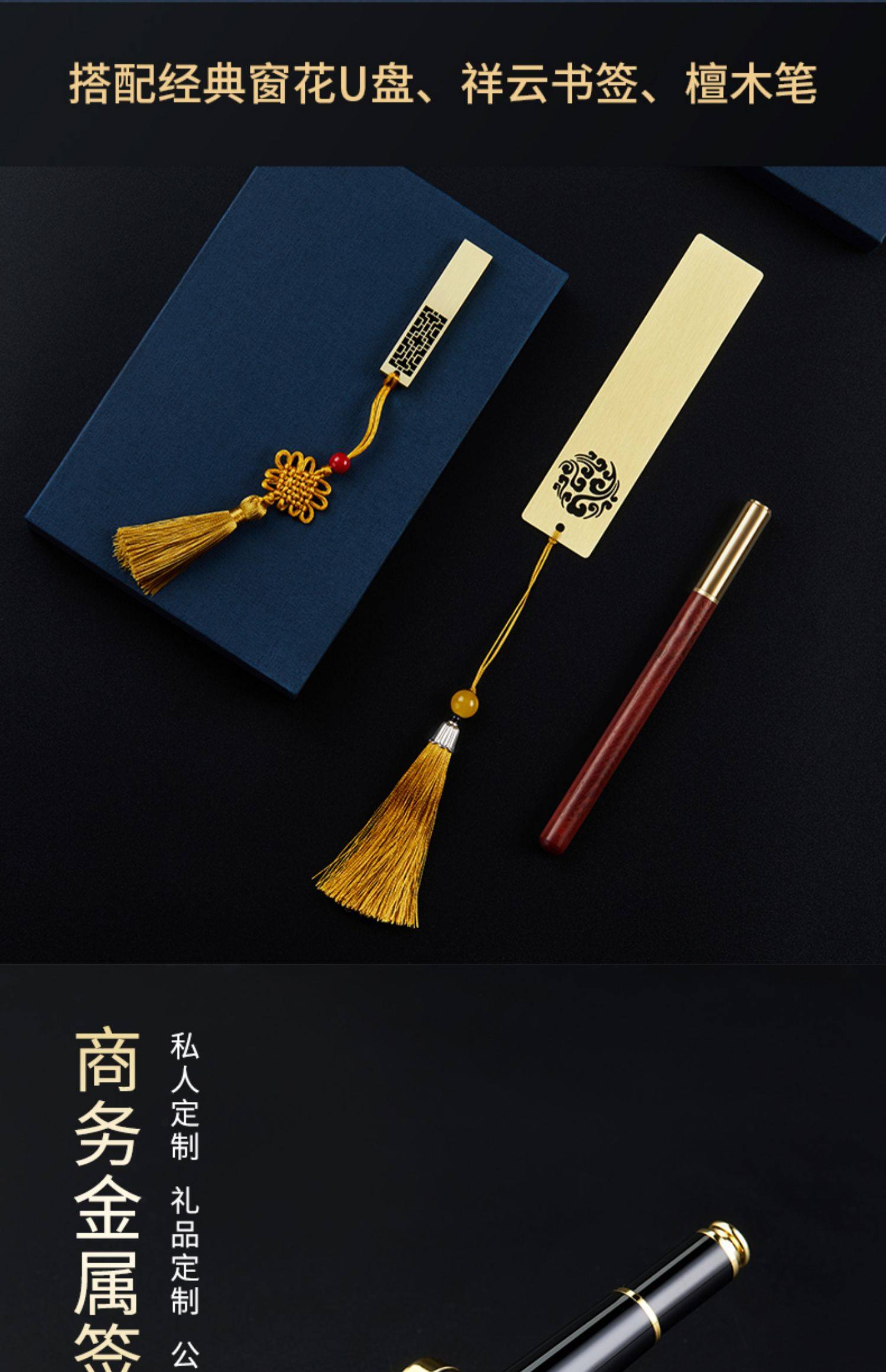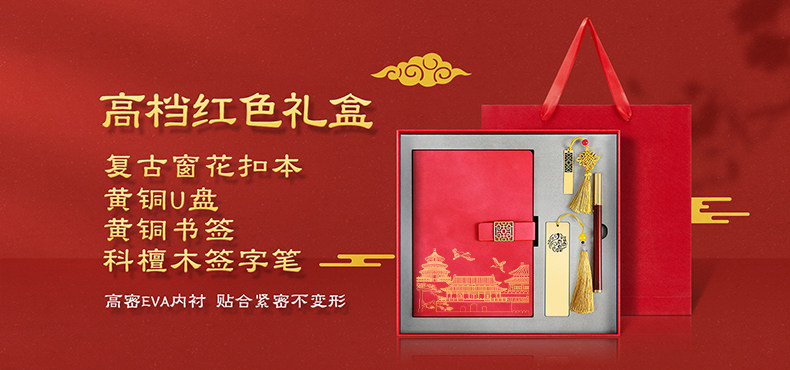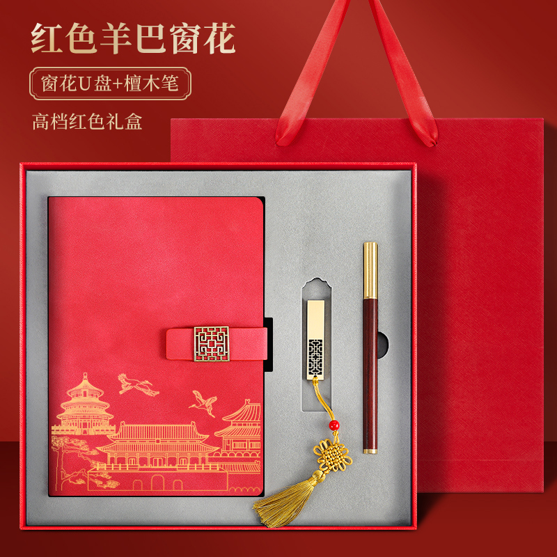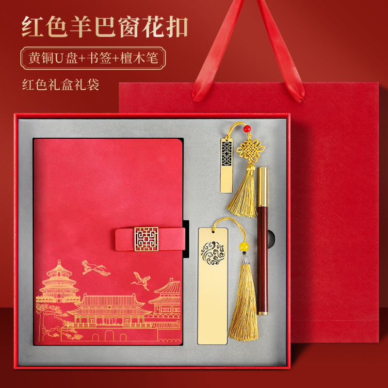 • 자금성 붉은 양 창 그릴 + 창 그릴 U 디스크 + 황동 책갈피 + 책 버클 + 백단향 펜 + 고급 빨간색 선물 상자