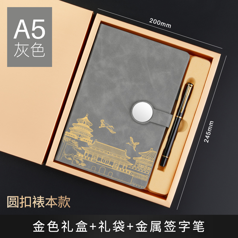 • A5 그레이—양바 창 그릴 버클 Y—2556F+금속 펜+골드 선물 상자 선물 가방