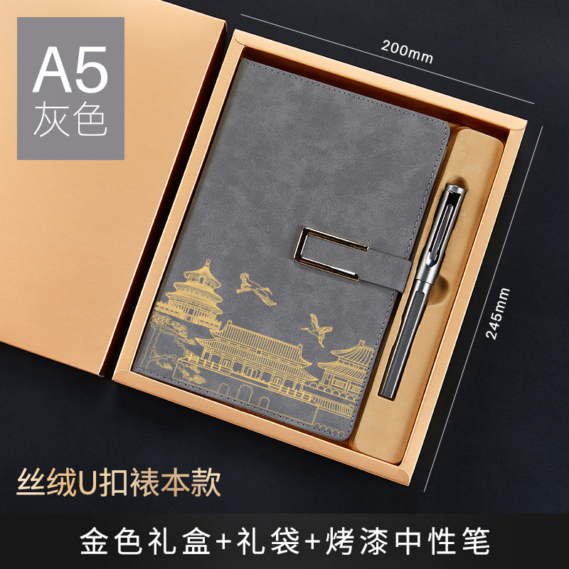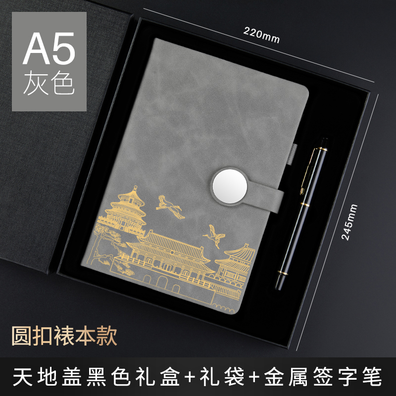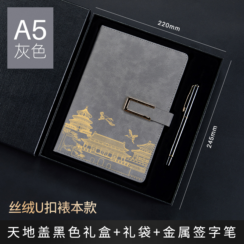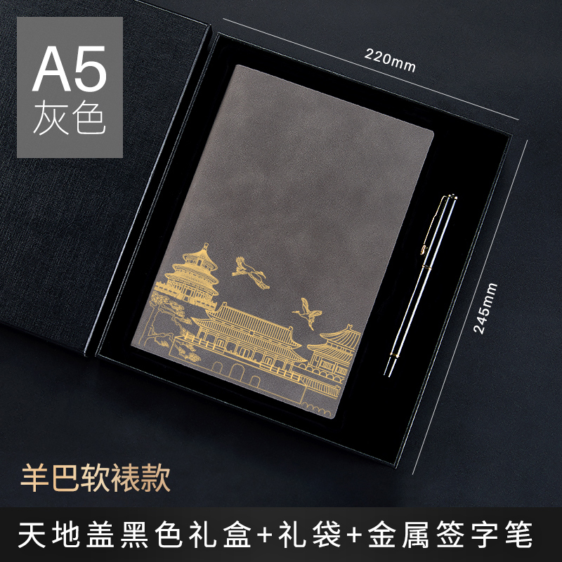 • A5 그레이—양바 장착 Y—2562+금속 펜+검은색 선물 상자+선물 가방
