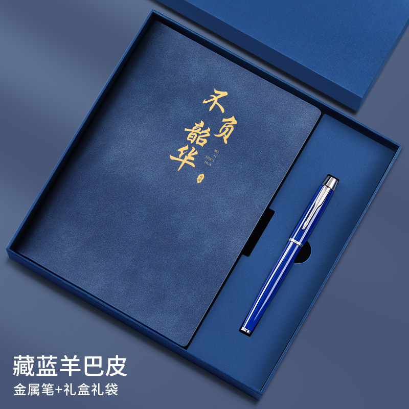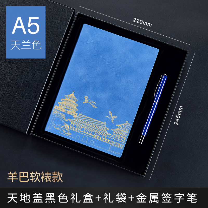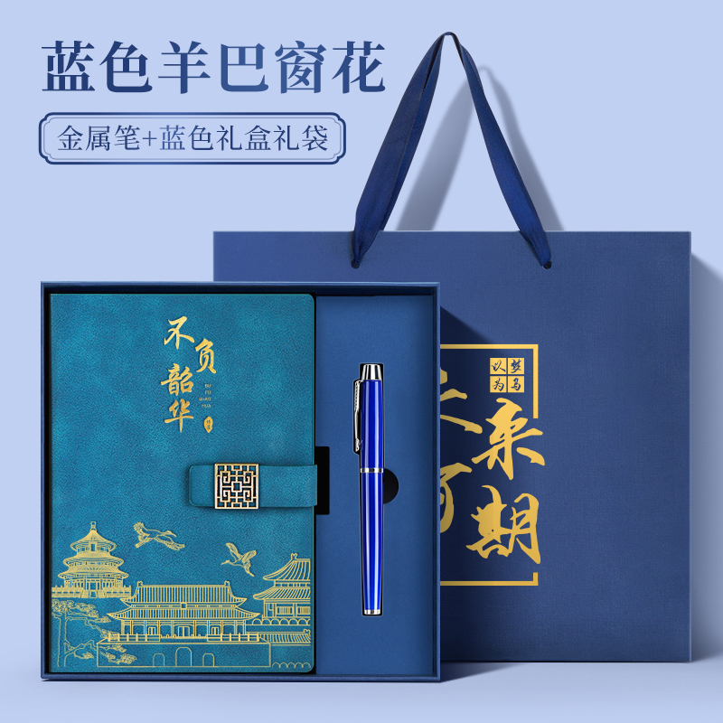 • A5 블루—양바 창 그릴 버클 Y—2556F+금속 펜+검은색 선물 상자 선물 가방