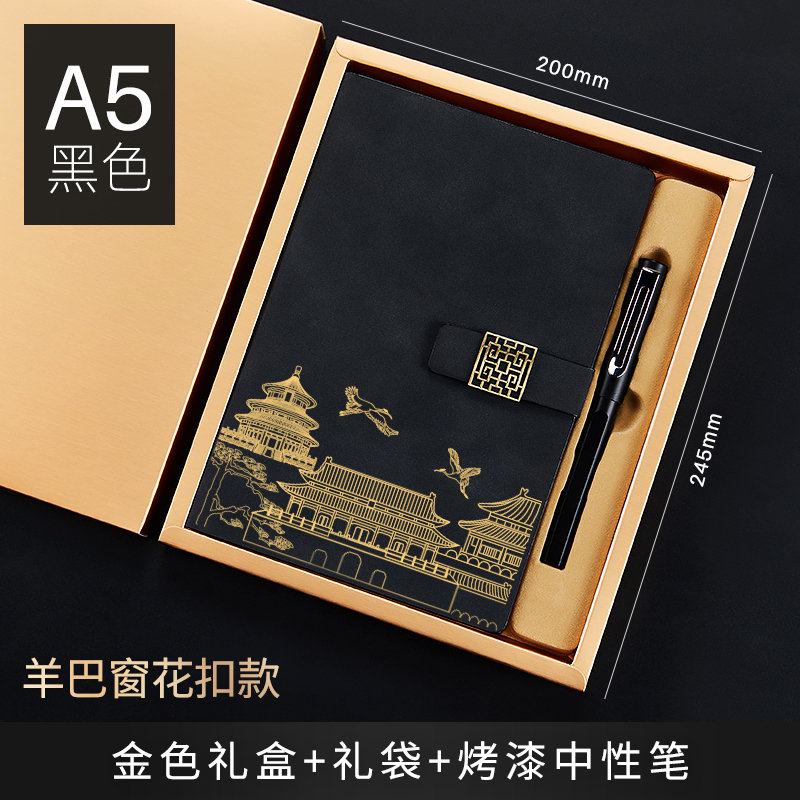 • A5 검정—양바 장착 Y—2562+금속 펜+검은색 선물 상자+선물 가방
