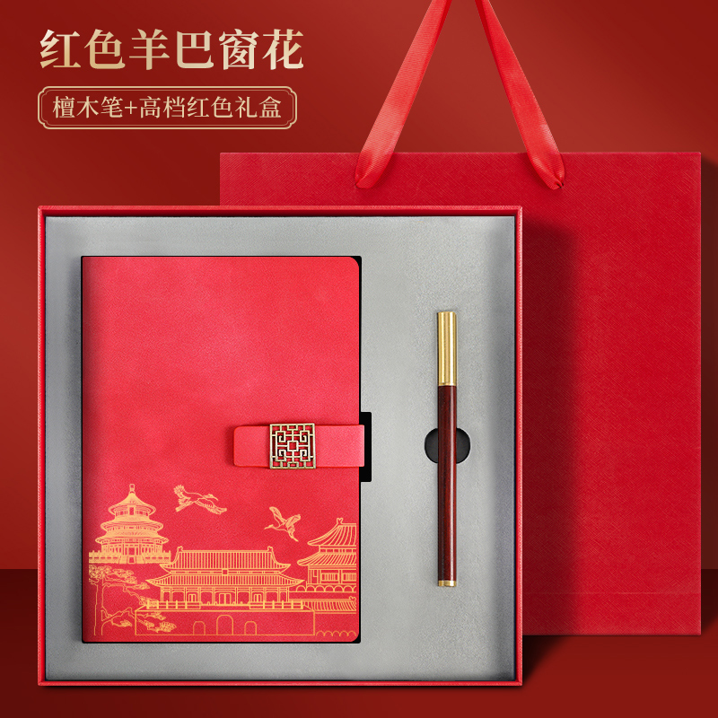• 붉은 양 창 그릴 + 창 그릴 U 디스크 + 백단향 펜 + 고급 빨간색 선물 상자