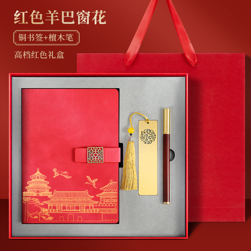 • 붉은 양 창 그릴 + 구리 책갈피 + 백단향 펜 + 고급 빨간색 선물 상자