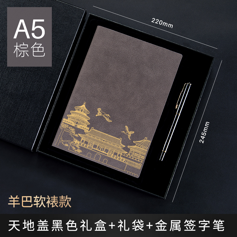 • A5 브라운—양바 장착 Y—2562+금속 펜+검은색 선물 상자+선물 가방