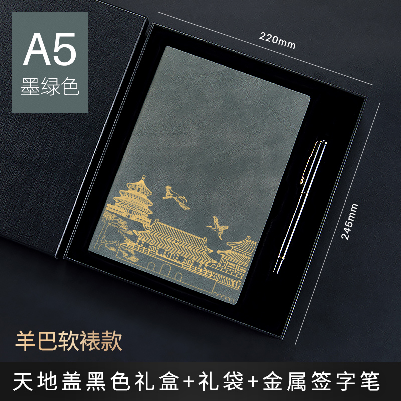 • A5 짙은 녹색 - 양바 장착 Y - 2562 + 금속 펜 + 검정색 선물 상자 + 선물 가방