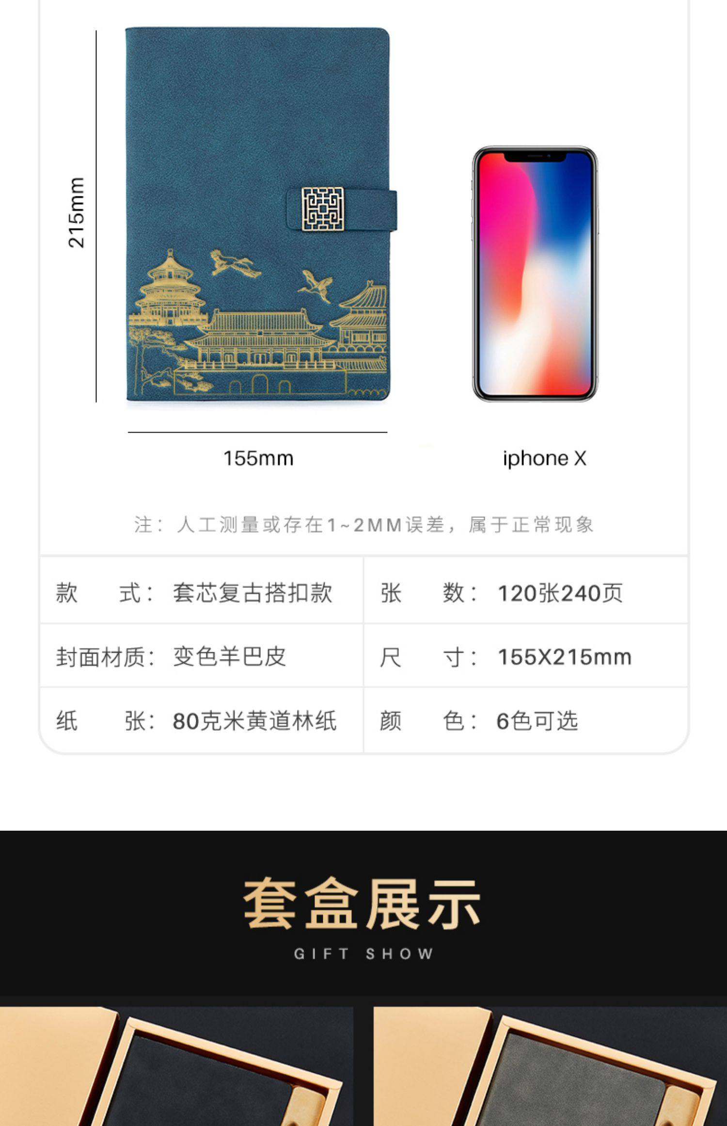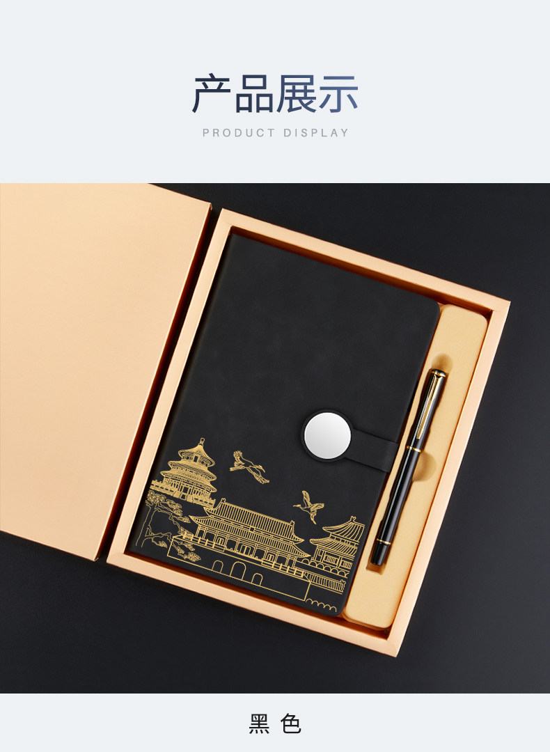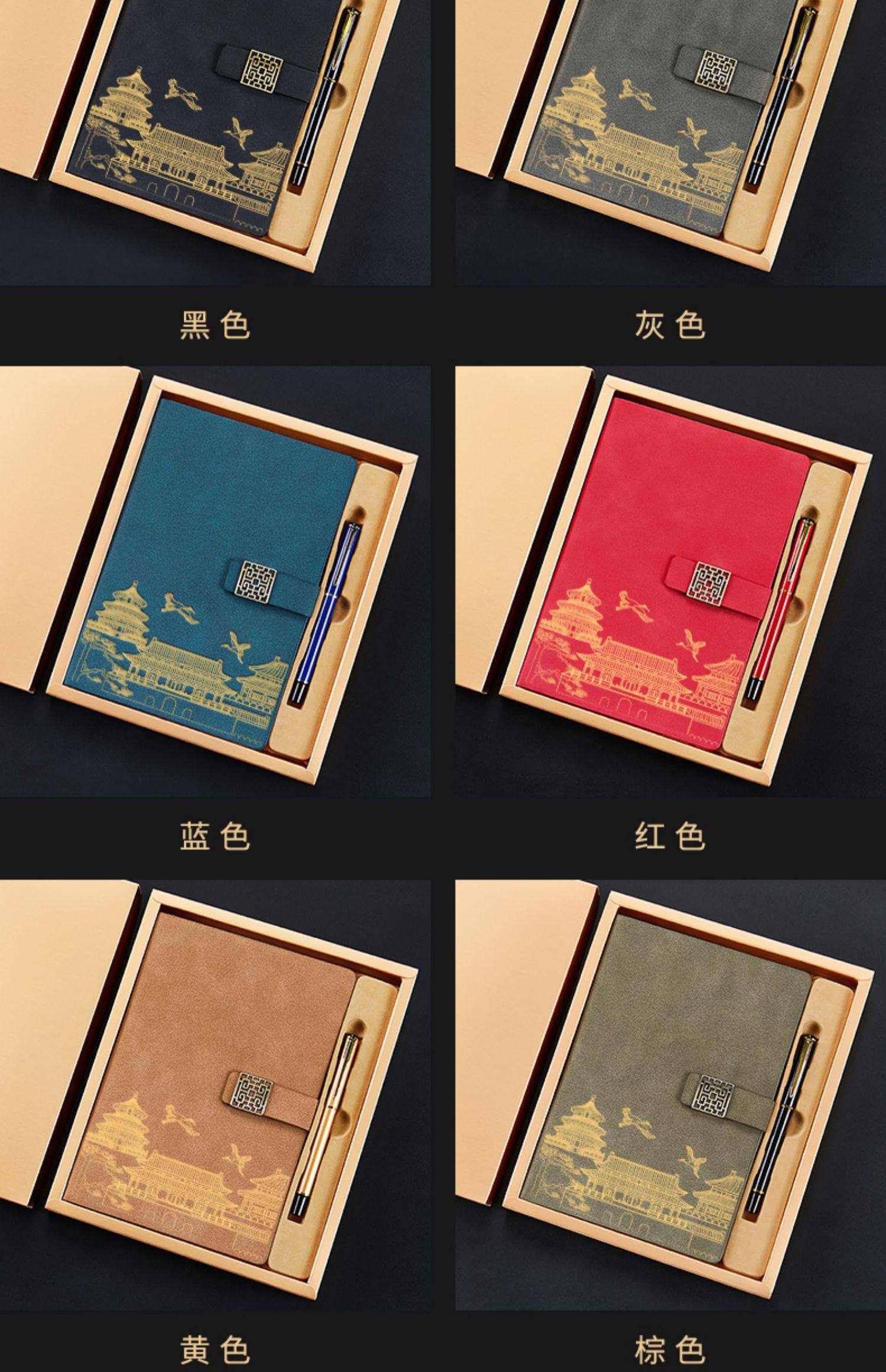 국가 조수 노트북 선물 상자 세트 인쇄 가능한 로고 두꺼운 레트로 중국 스타일 메모장 A5 하이 엔드 비즈니스스토어 가기