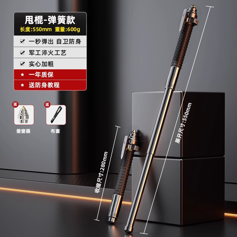스틱 자동 봄 텔레스코픽 법률 자동차 자기 방어 무기 솔리드 3 섹션 자기 방어 수축 스틱 개 스틱 자기 방어스토어 가기