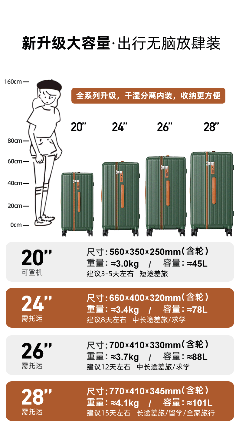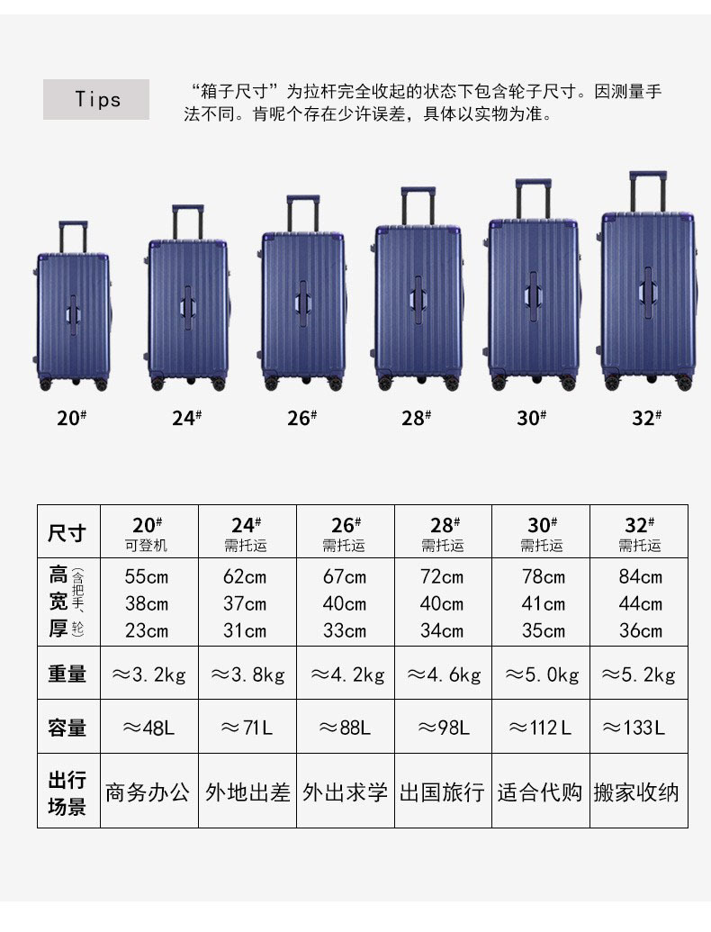 PC 두꺼운 대용량 여행가방 24inch 바퀴 달린 트롤리 케이스, 회전식 바퀴, 기내 반입 가능, 초경량 지퍼, 28인치 여행가방, 비밀번호 잠금장치스토어 가기