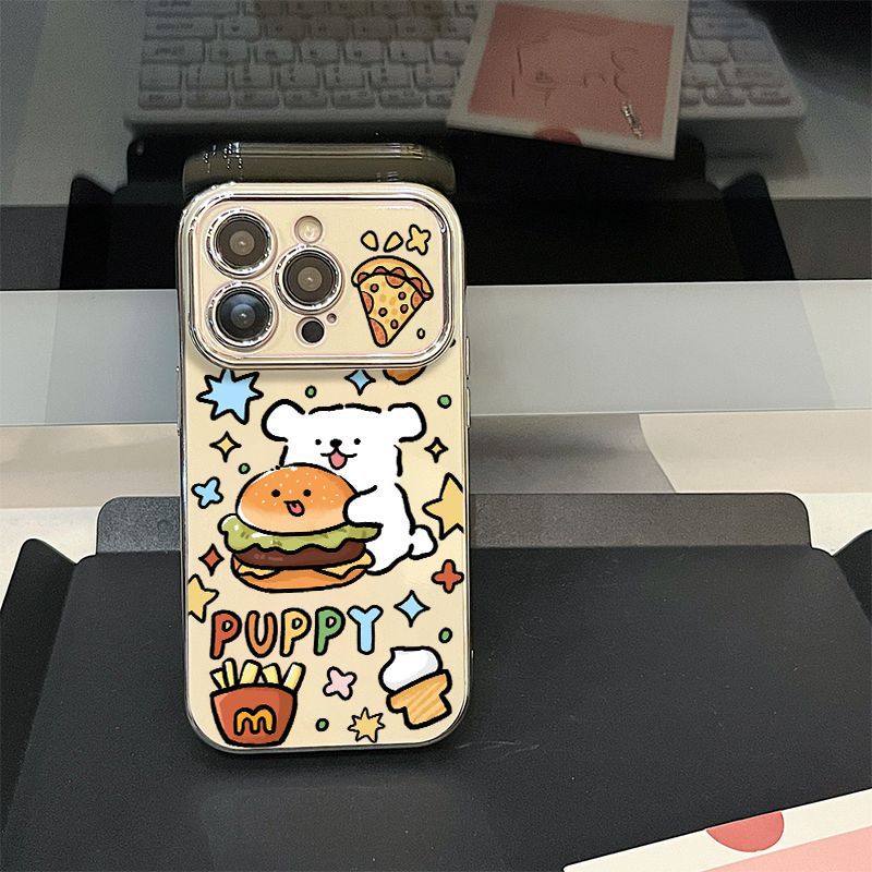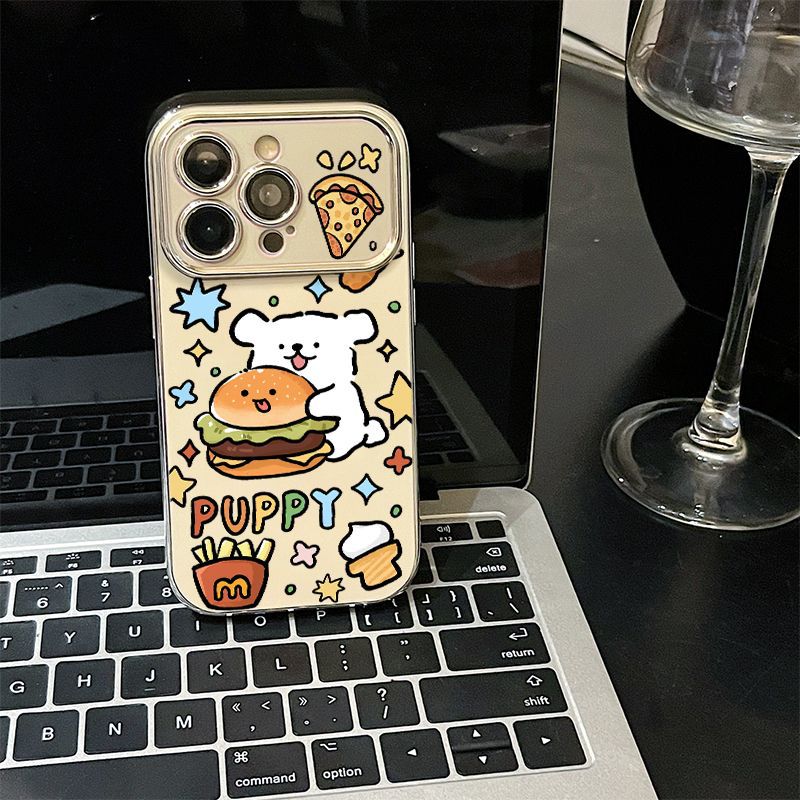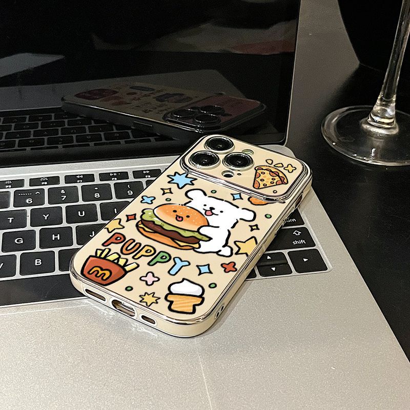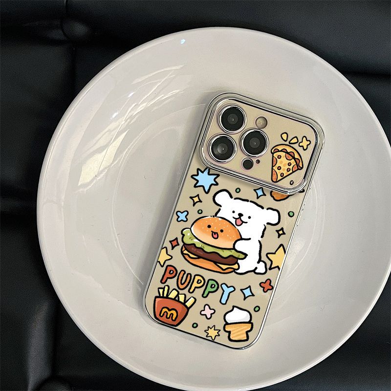 애플 16promax 휴대 전화 케이스 iPhone14/13/12 가득 차있는 범위 하락 방지를 위한 전기 도금 윈도우 햄버거 강아지스토어 가기