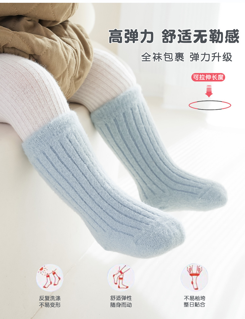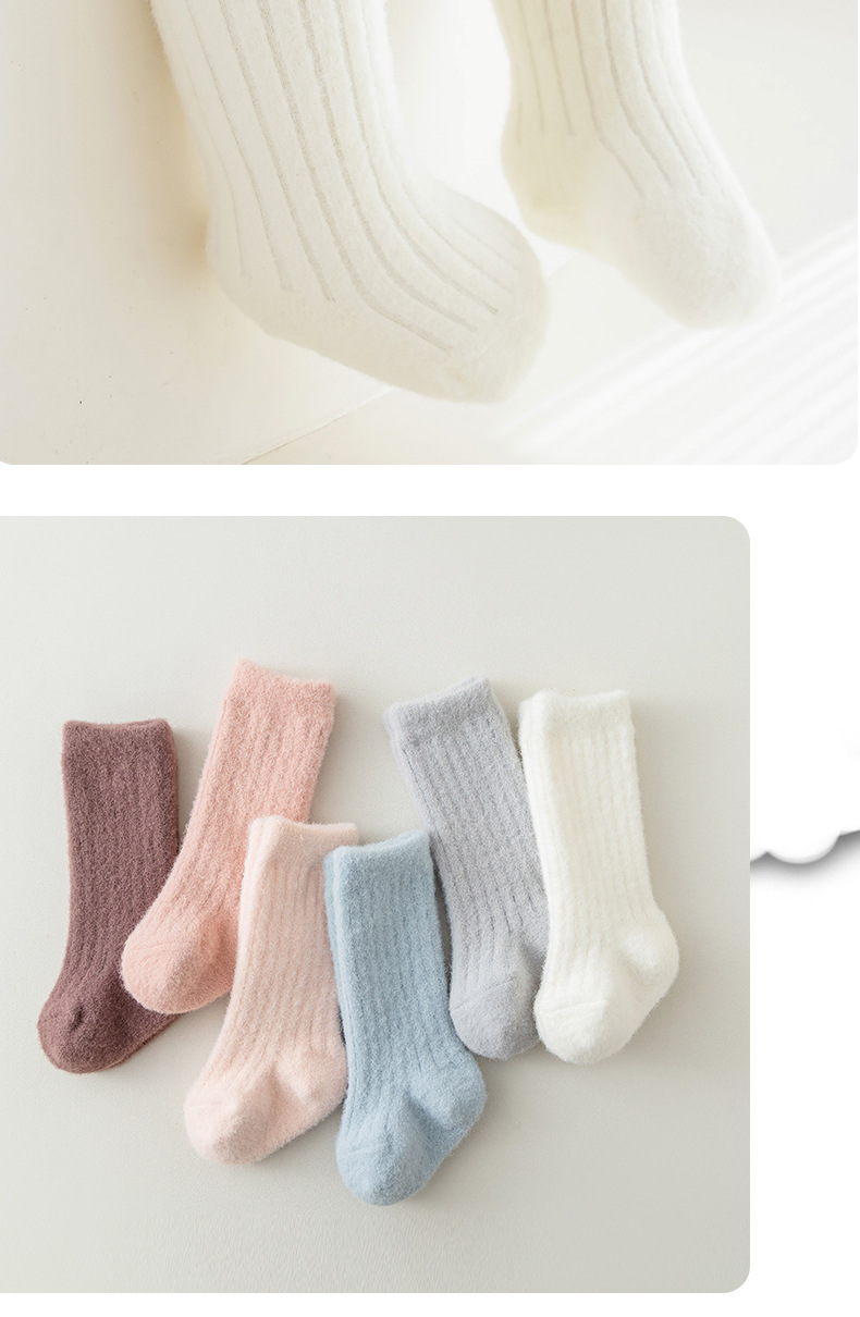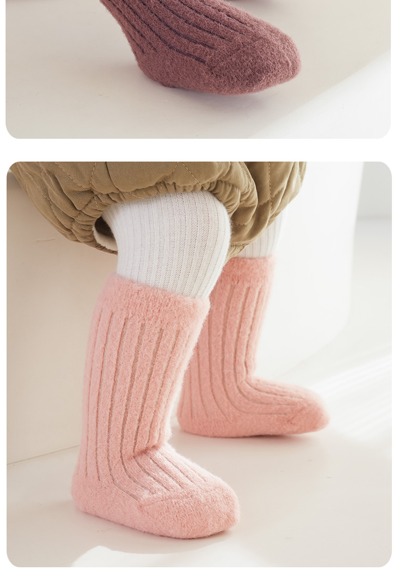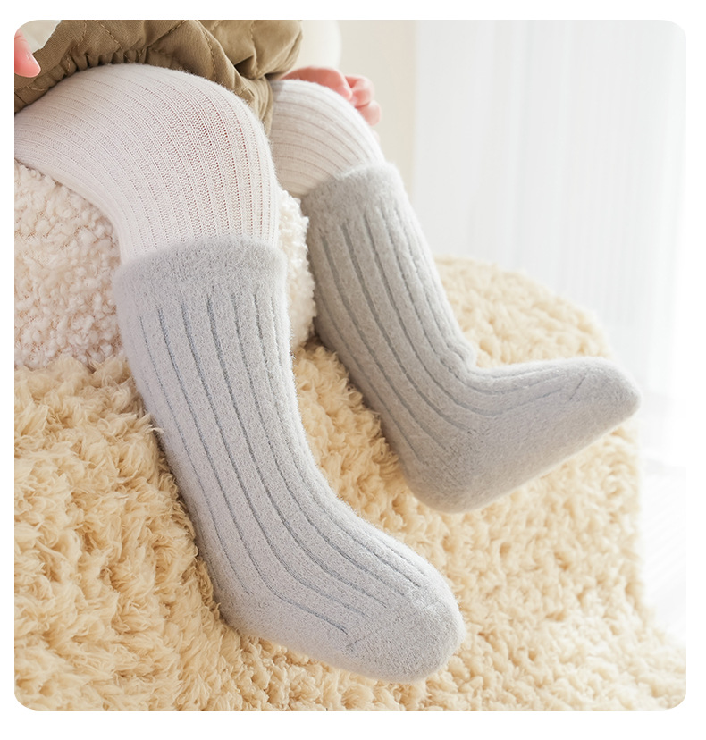 아기 양말 새로운 가을과 겨울 따뜻한 단색 아이들은 부드럽고 편안한 아기 열 보관 양말을 기모 두껍게