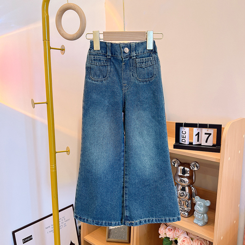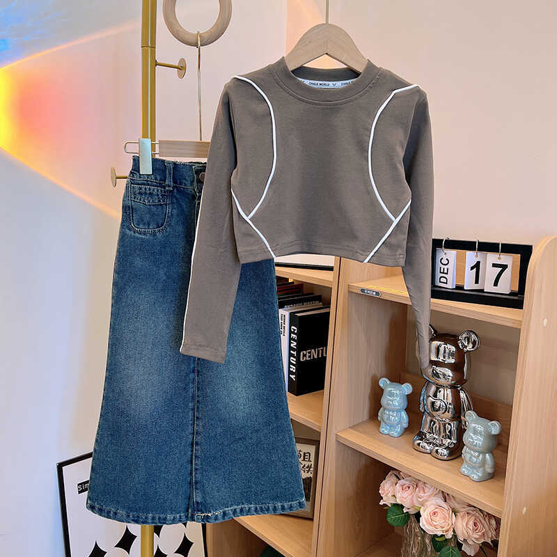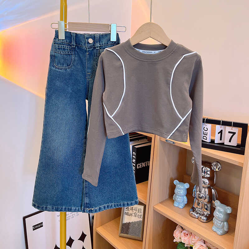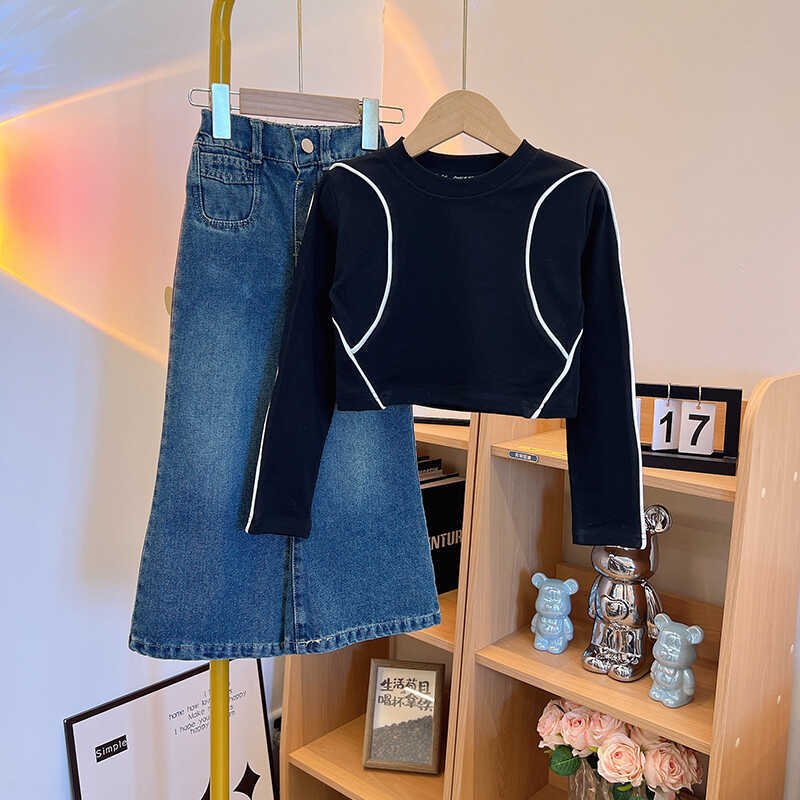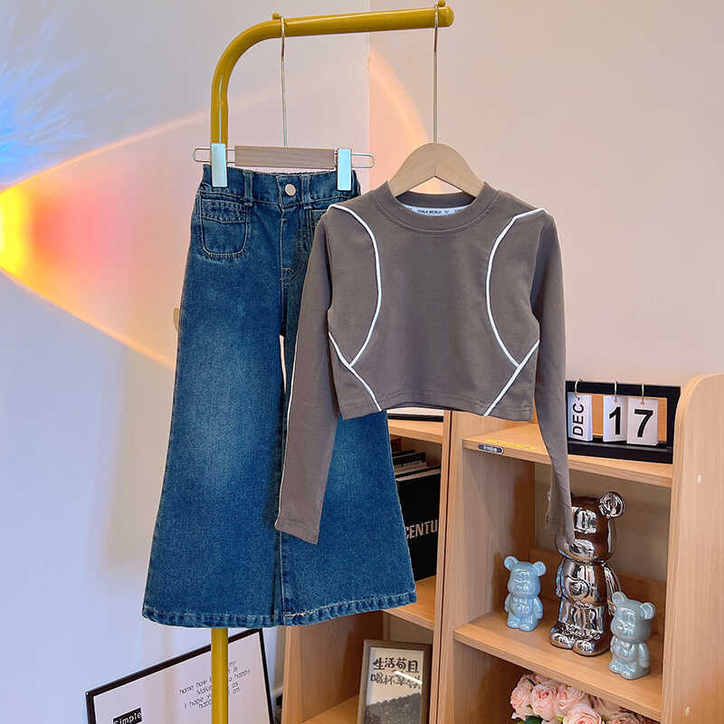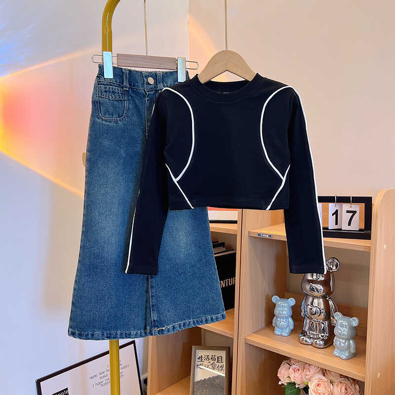 소녀 가을 새 세트 2024 긴팔 유행 청바지 어린이 가을 와이드 레그 바지 투피스 세트스토어 가기