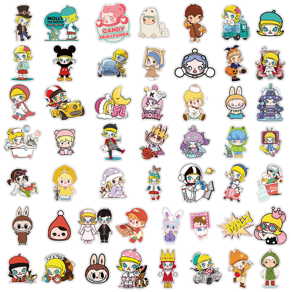 50 애니메이션 버블 매트 귀여운 캐릭터 만화 스티커 방수 문구 노트북 스티커 도매 Q 버전