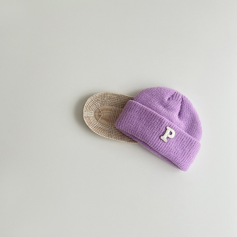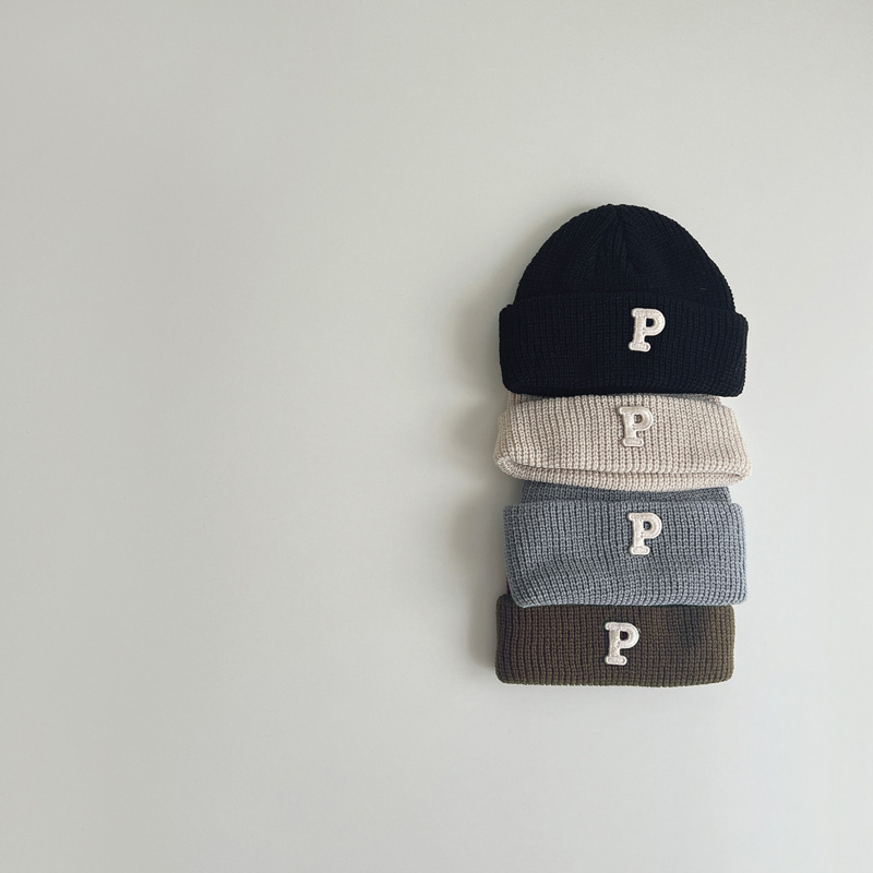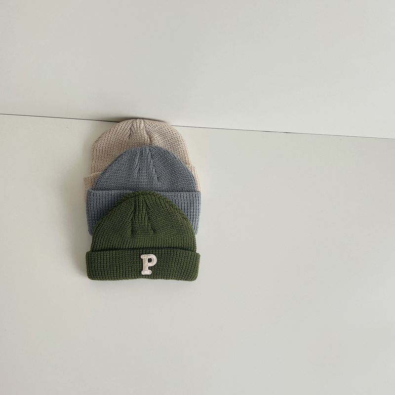 한국 가을과 겨울 어린이 모자 따뜻한 2023 어린이 니트 캡 P 편지 베이비 풀오버 캡 베이비 울 캡 조수스토어 가기