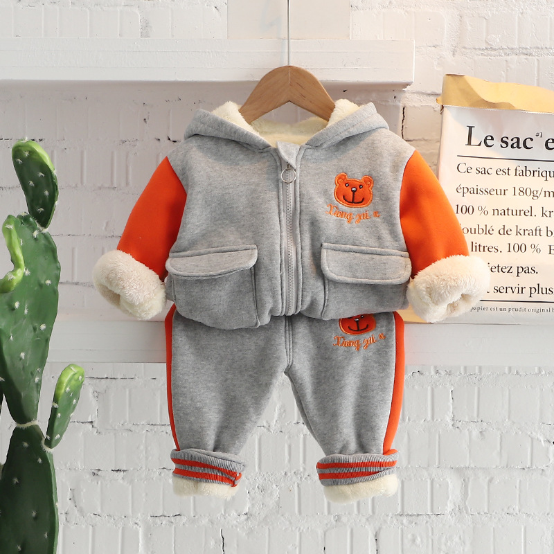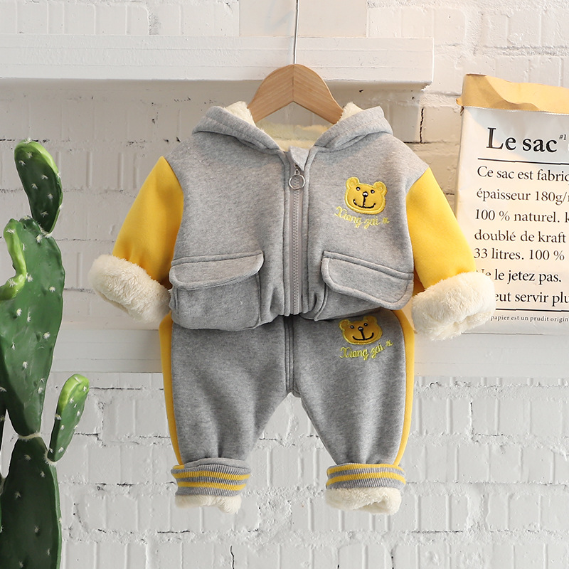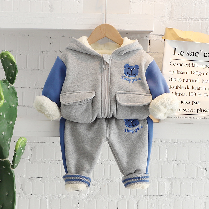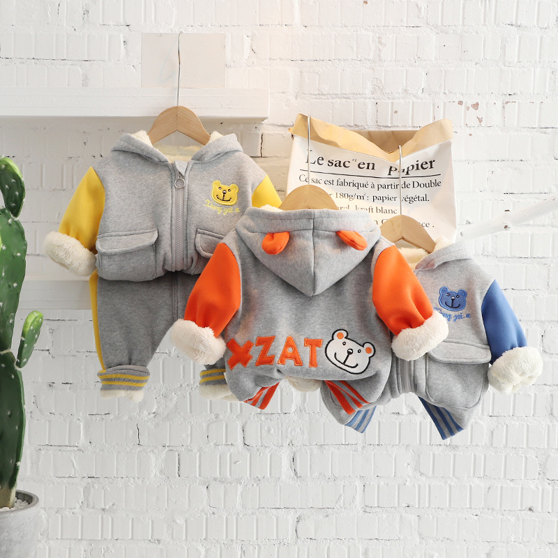 소년 가을과 겨울 세트 2024 새로운 서양식 아기 소년 아기 겨울 만화 후드 기모 투피스 세트스토어 가기
