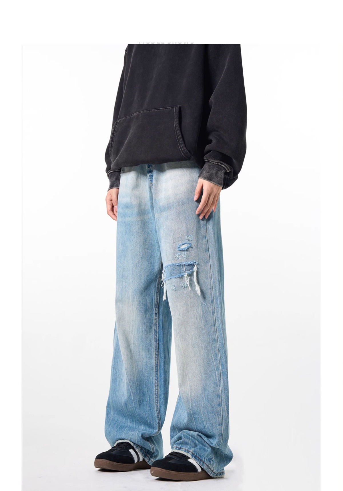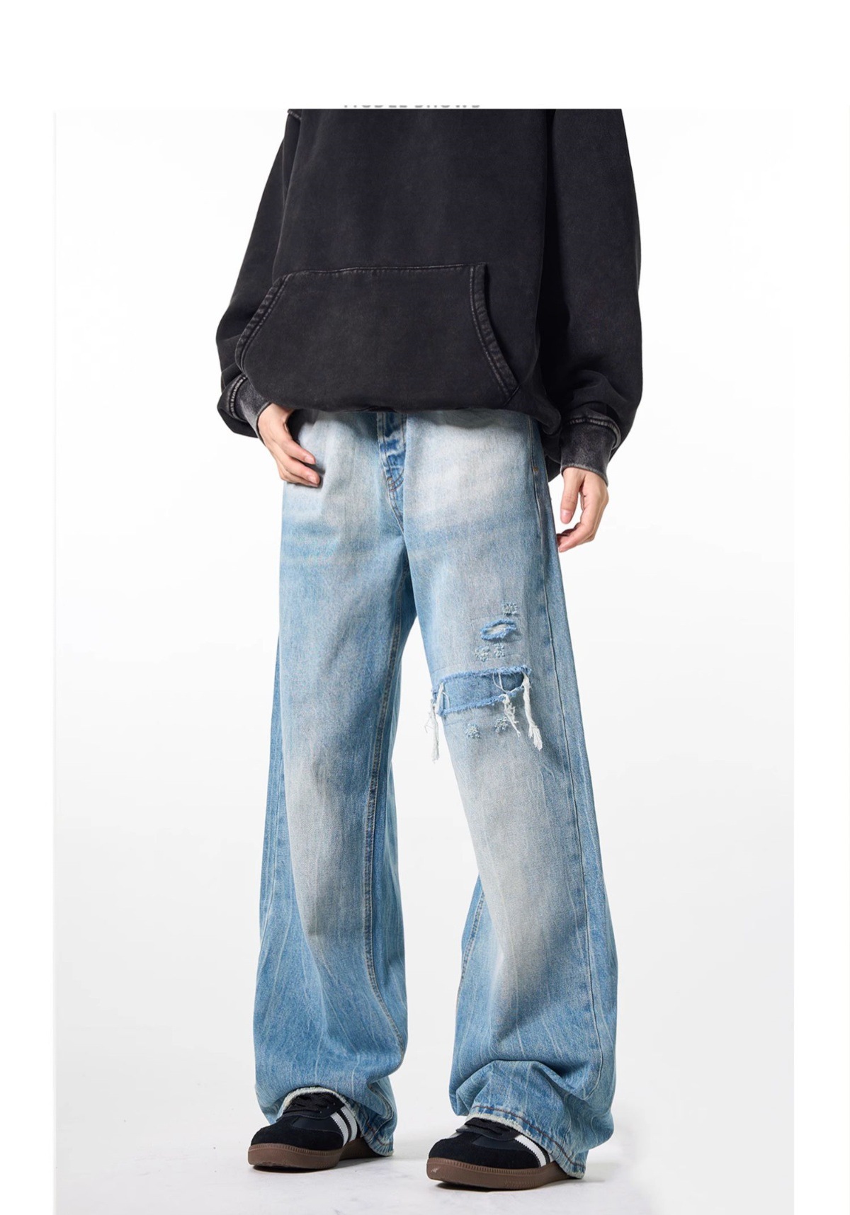 전국 유행 아메리칸 스타일 레트로 스트레이트 레그 청바지 봄과 가을 새로운 빈티지 워시드 웨어 느슨한 넓은 다리 바지