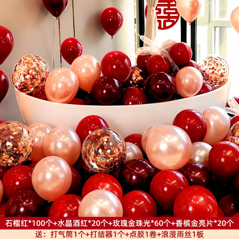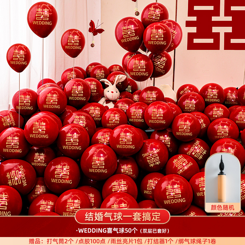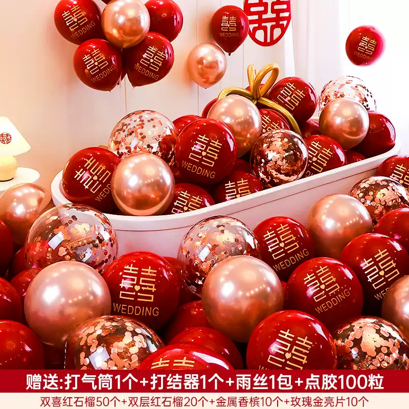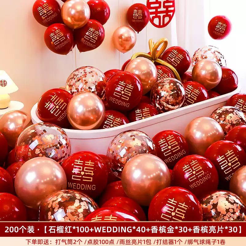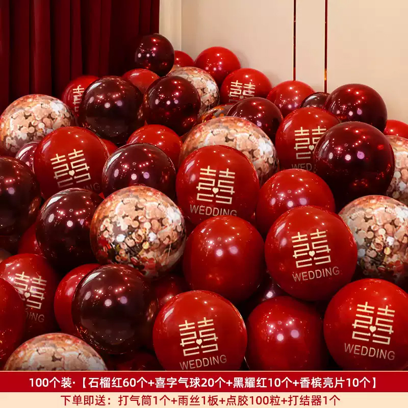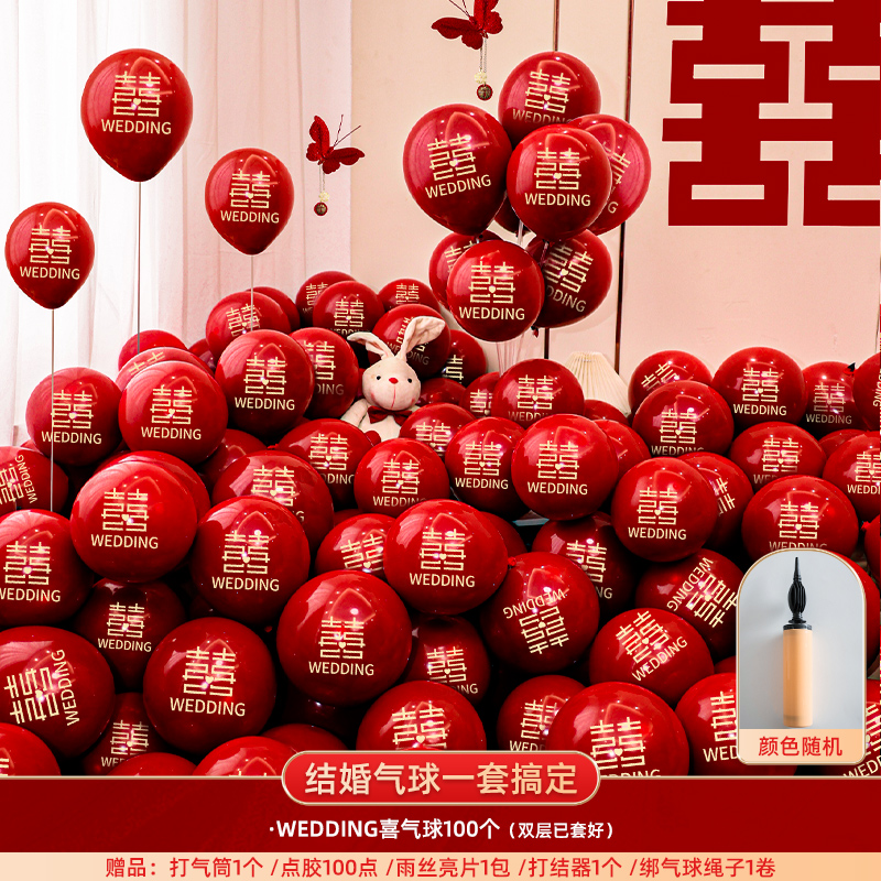 웨딩 장식 풍선 웨딩 룸 레이아웃 세트 웨딩 약혼 장면 레드 더블 풍선 웨딩 용품스토어 가기