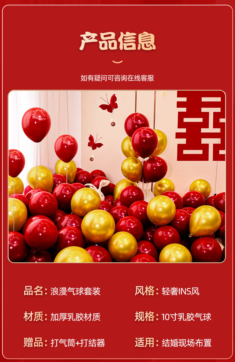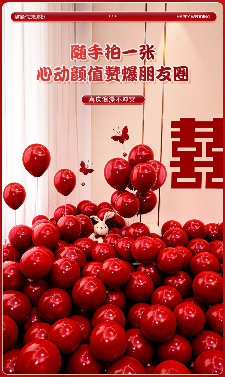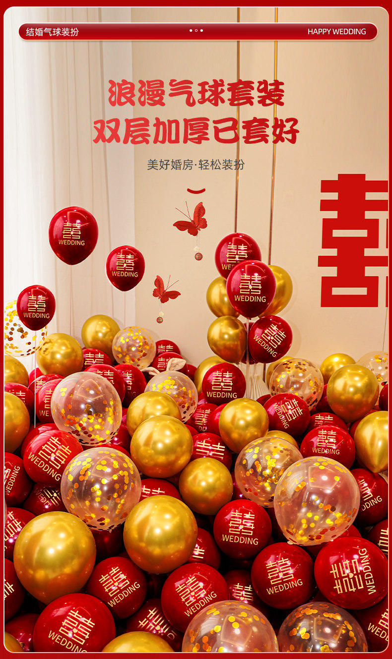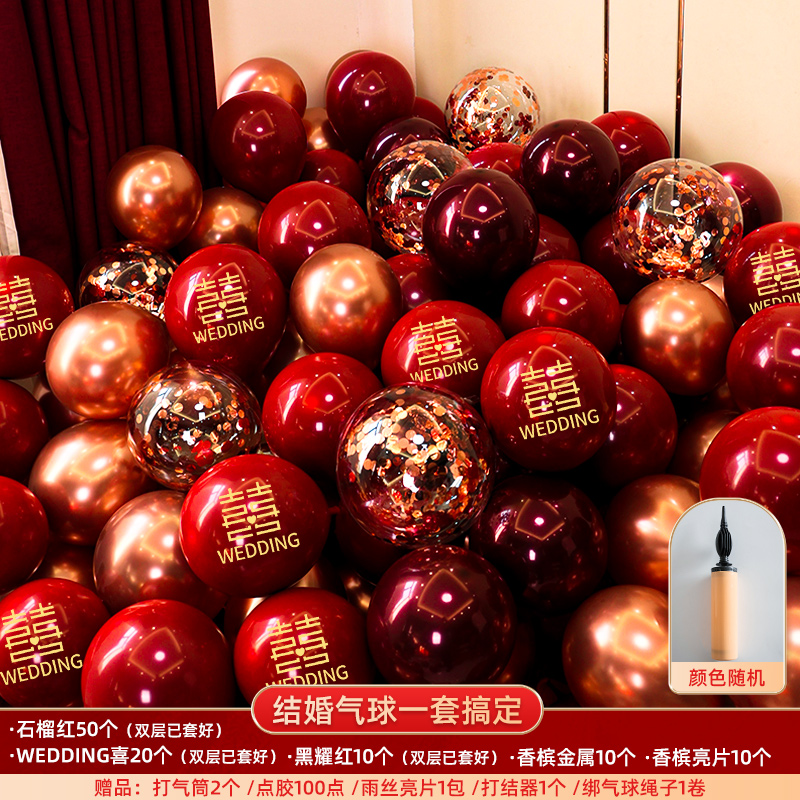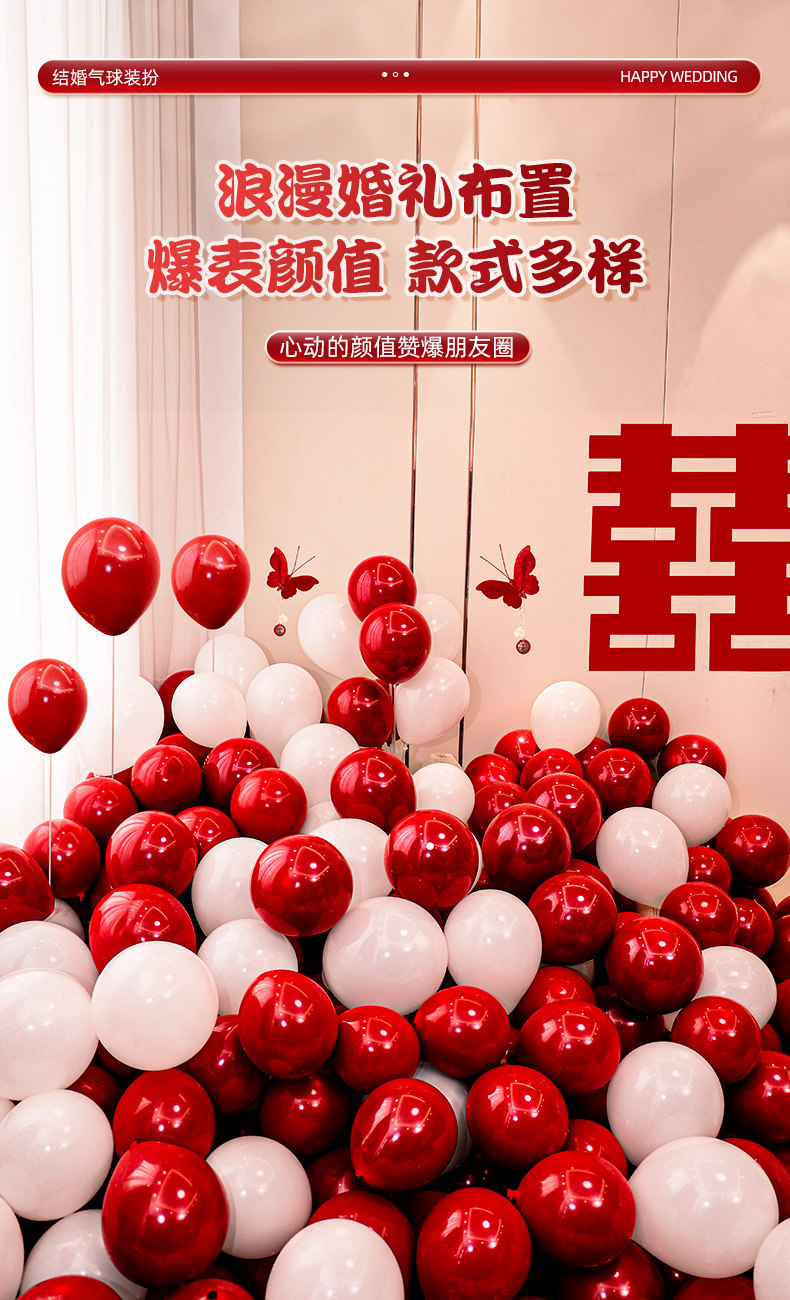 웨딩 장식 풍선 웨딩 룸 레이아웃 세트 웨딩 약혼 장면 레드 더블 풍선 웨딩 용품스토어 가기