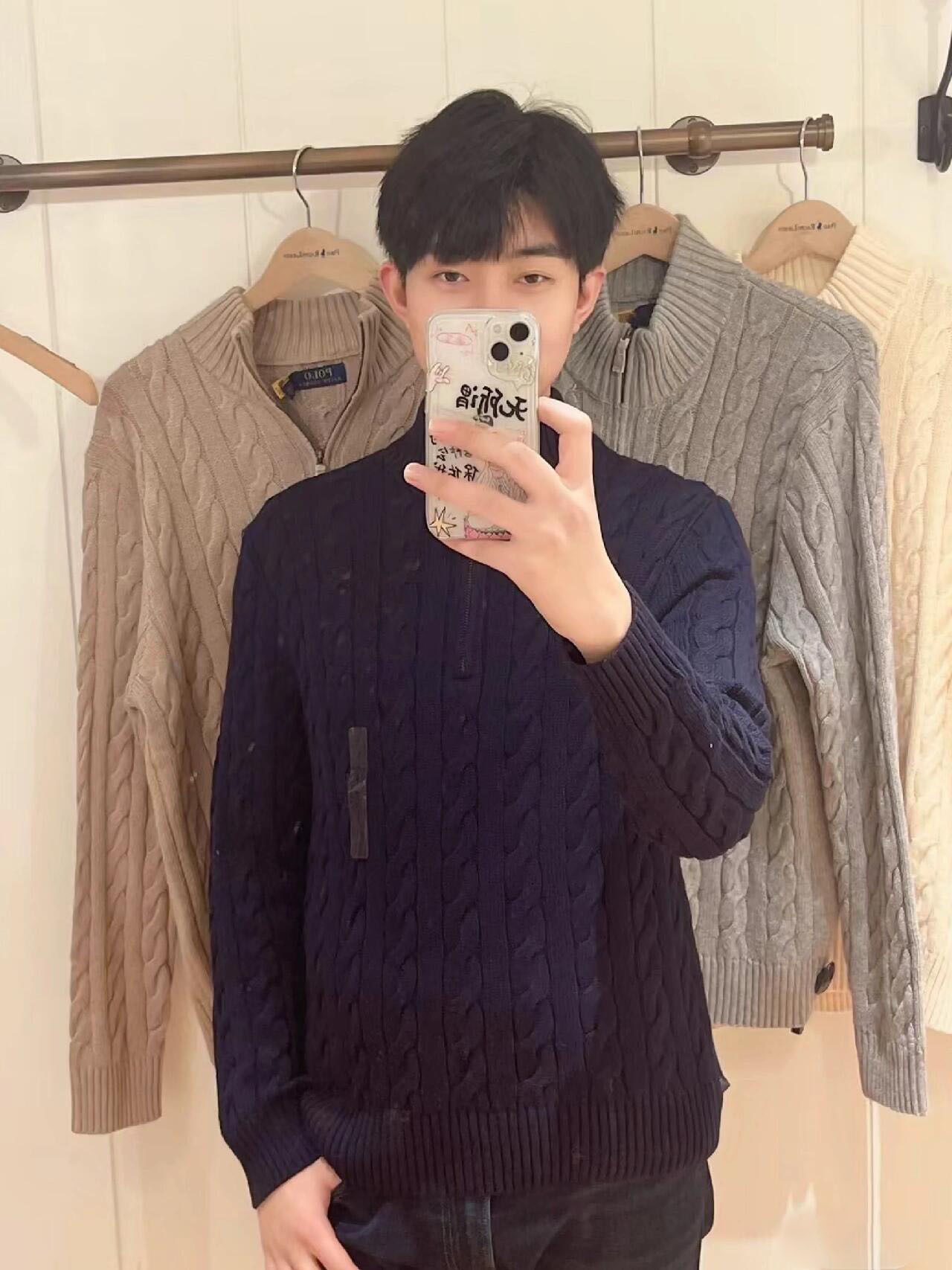 스윕 사이즈 RL 러프 포니 자수 니트웨어 남성 가을 및 겨울 수직 칼라 트위스트 하프 Zip 스웨터 여성용 웜스토어 가기