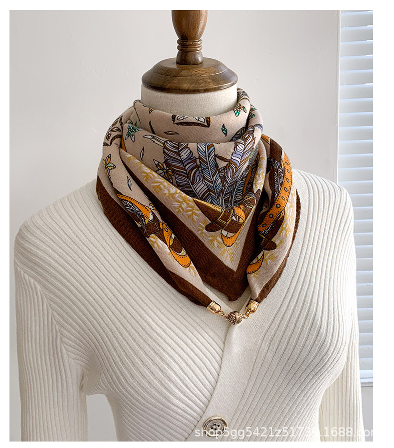가을 겨울 실크 스카프, 넥타이형 고급 자석 버클, 다용도 여성용 보온 목도리, 면과 린넨 소재