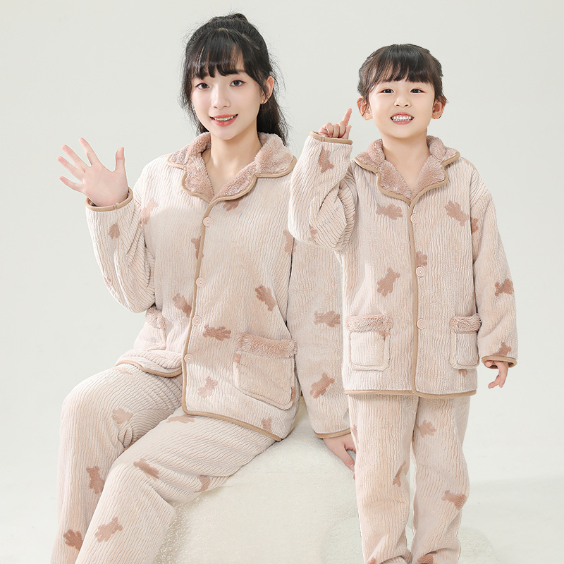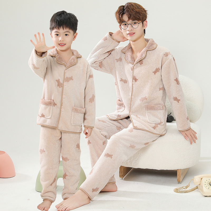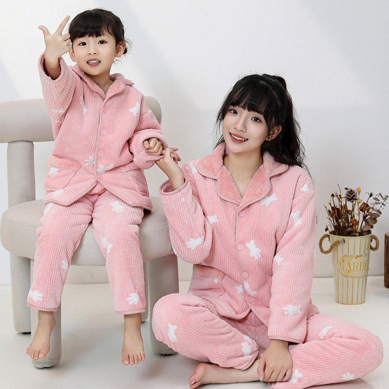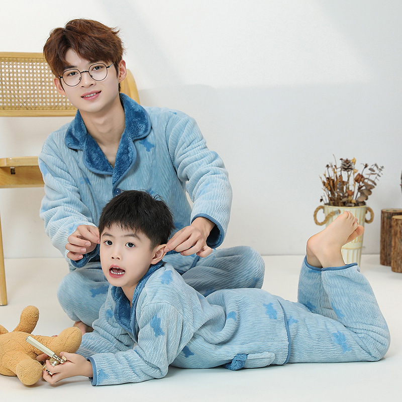부모-자식 복장 가족 3 개 가정 옷 더블 따뜻한 엄마와 딸 어머니와 아들 파라 벨벳 파자마 도매스토어 가기