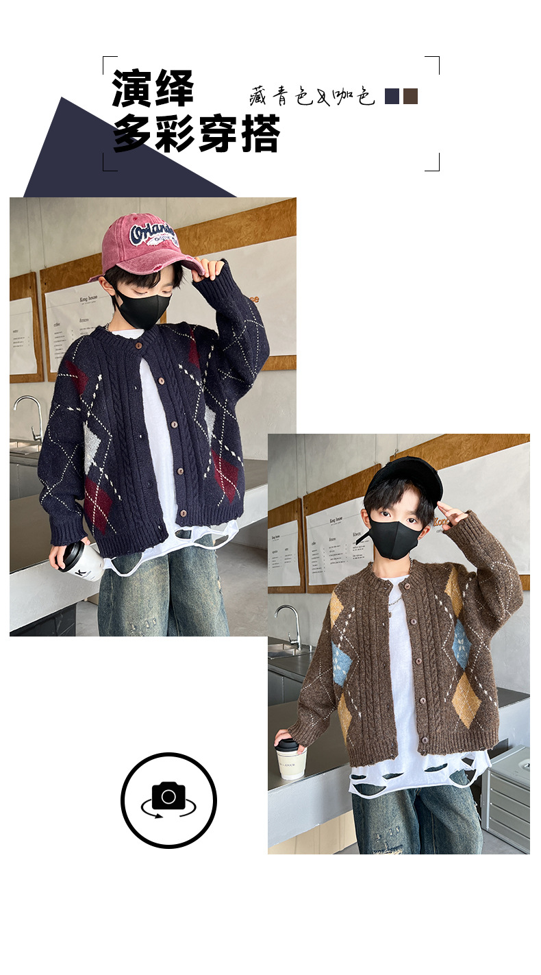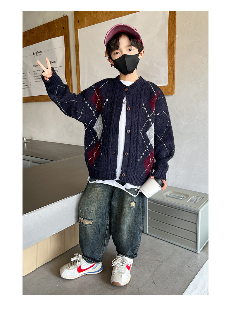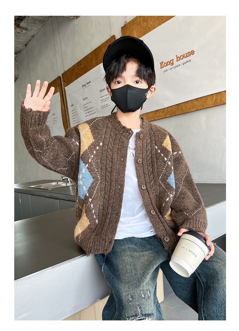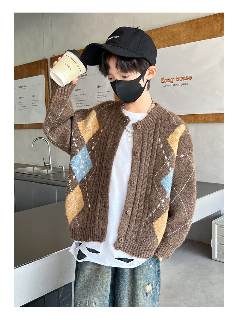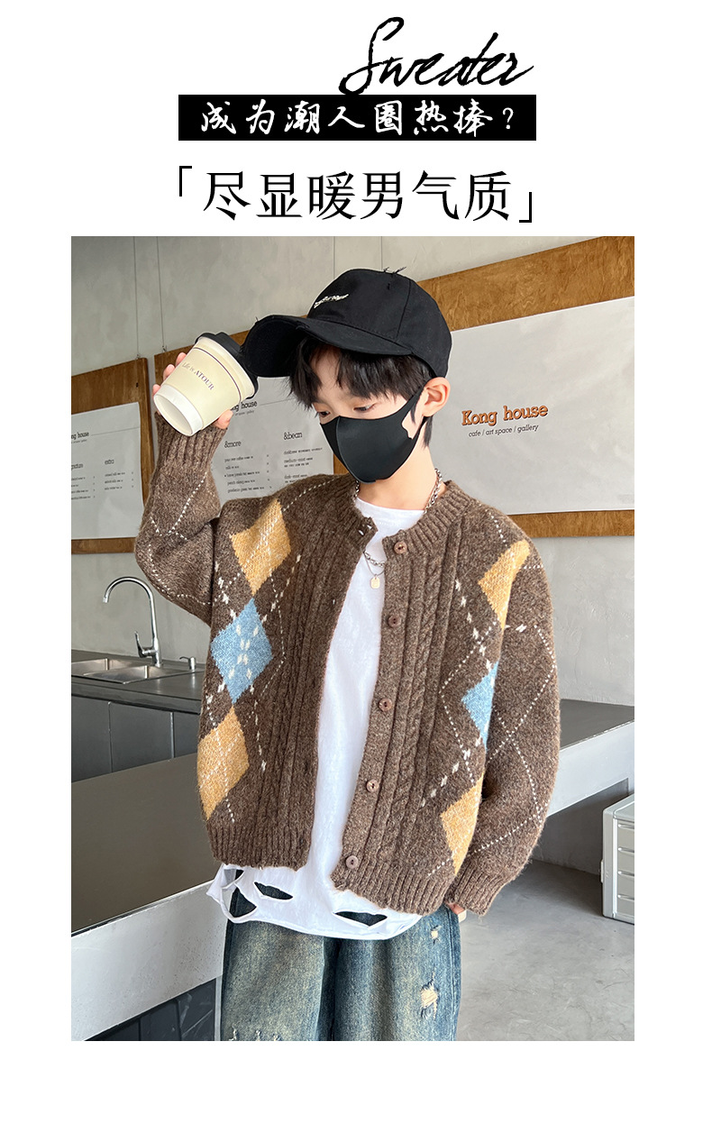 어린이 스웨터 가을과 겨울 새 소년 카디건 니트 스웨터 2024 미들 및 빅 보이즈를위한 새로운 유행 코트 트렌디스토어 가기