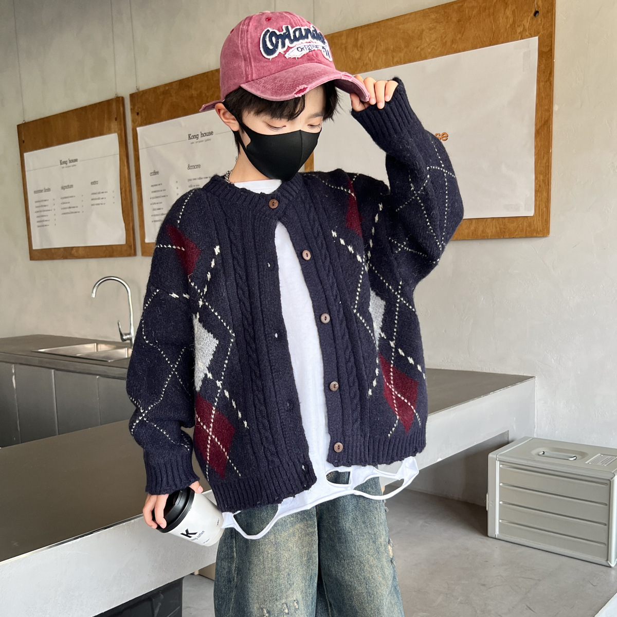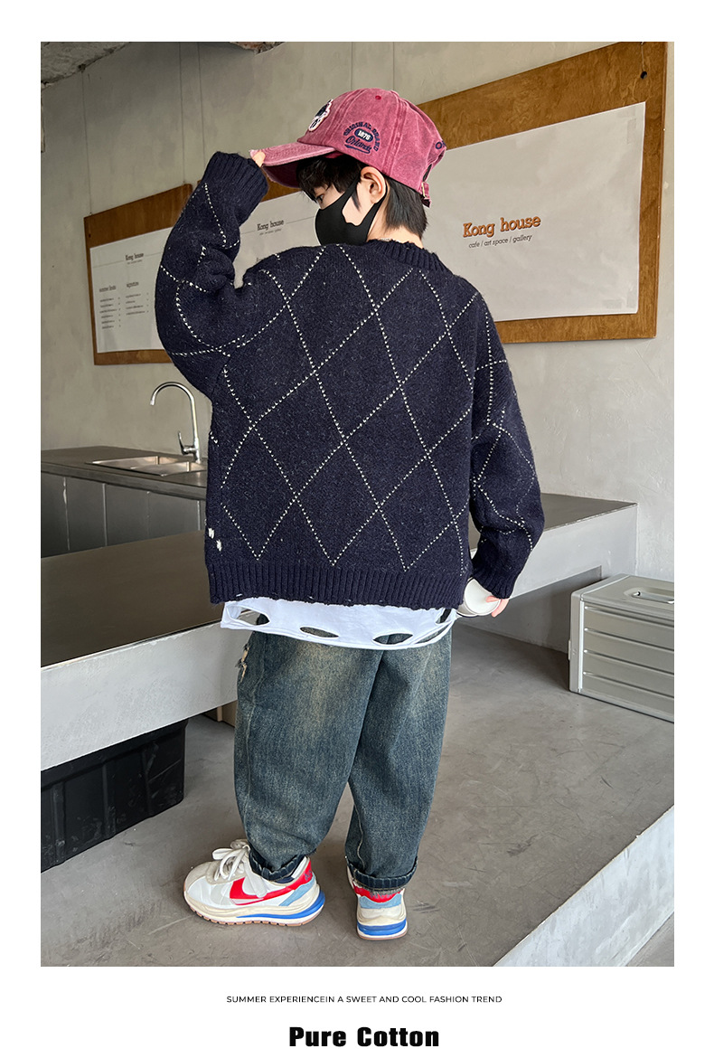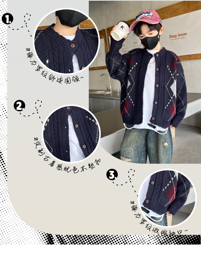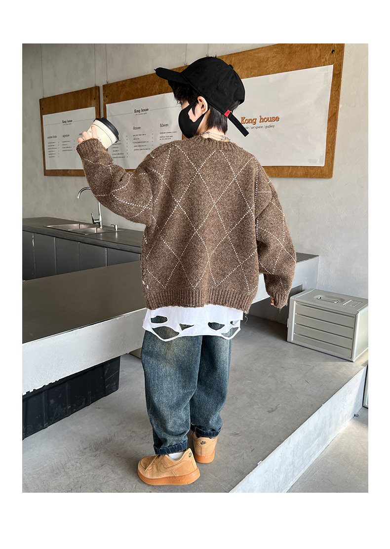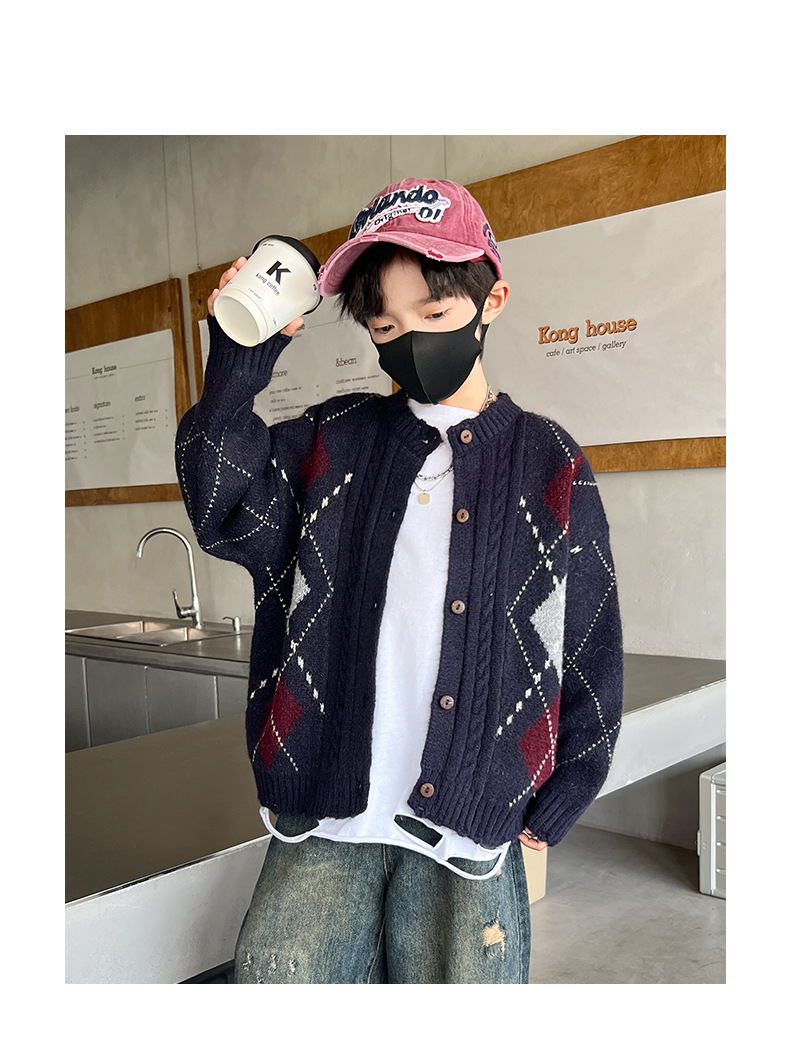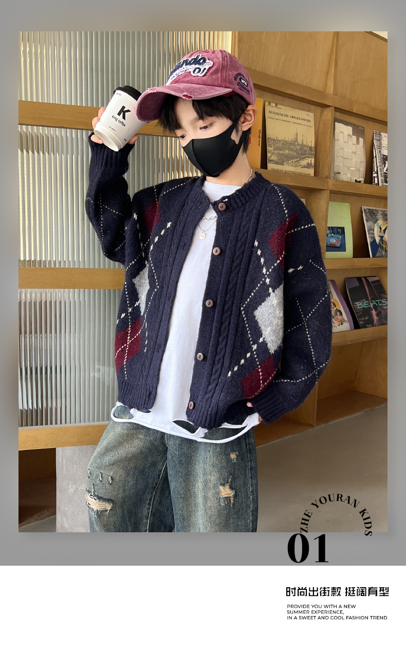 어린이 스웨터 가을과 겨울 새 소년 카디건 니트 스웨터 2024 미들 및 빅 보이즈를위한 새로운 유행 코트 트렌디스토어 가기
