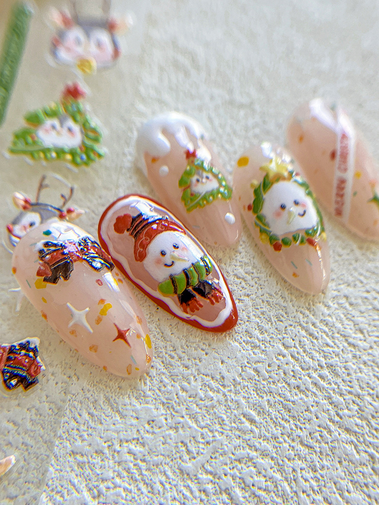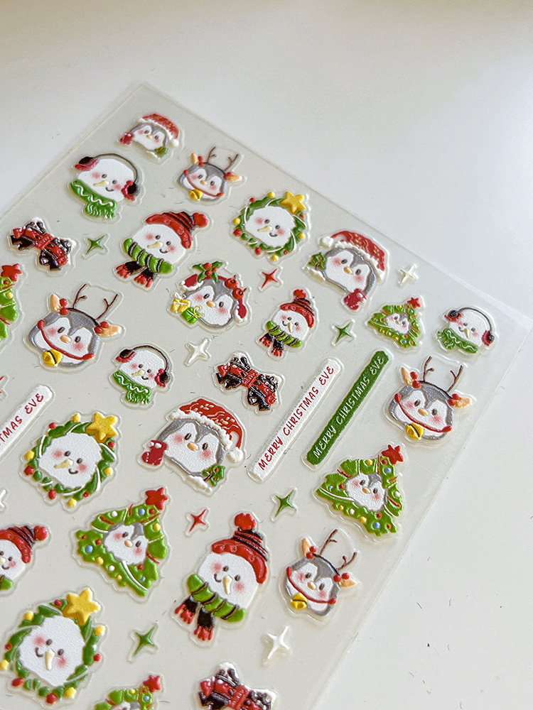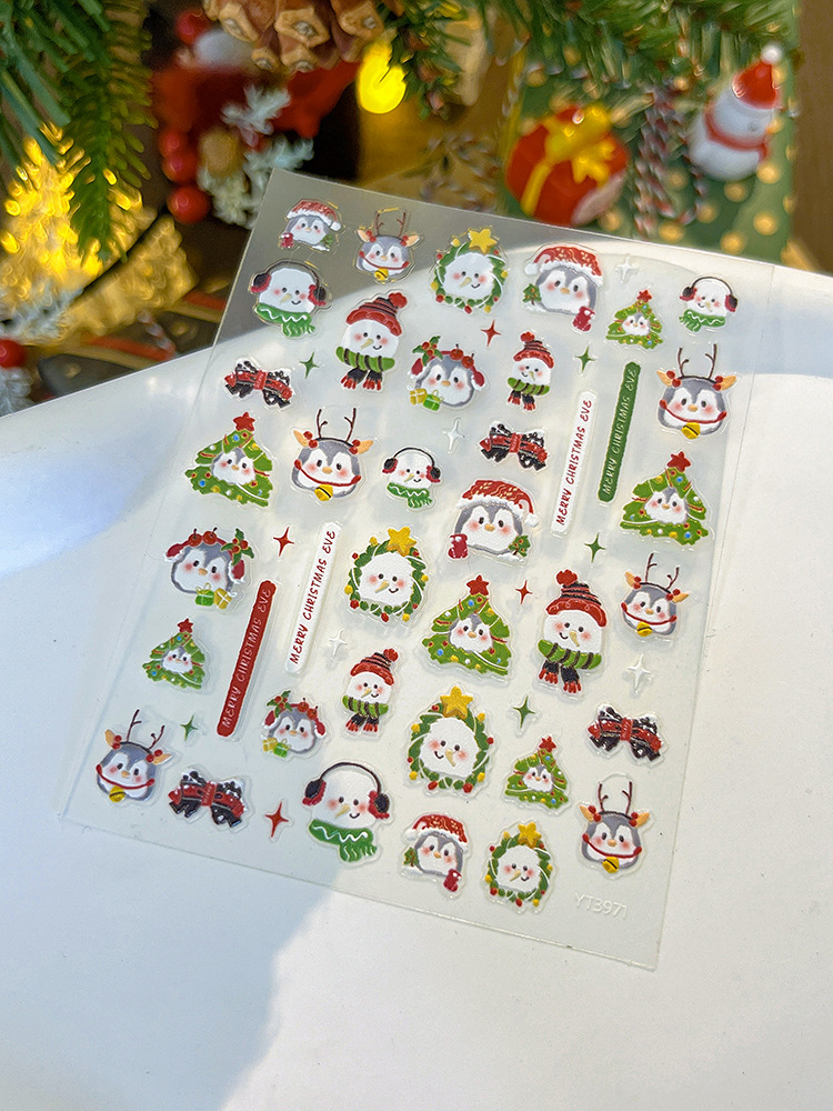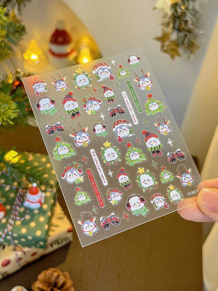 YITU 개미 그림 작은 펭귄 크리스마스 네일 아트 스티커 눈사람 구호 크리스마스 트리 접착제 네일 장식 스티커 YT3971스토어 가기